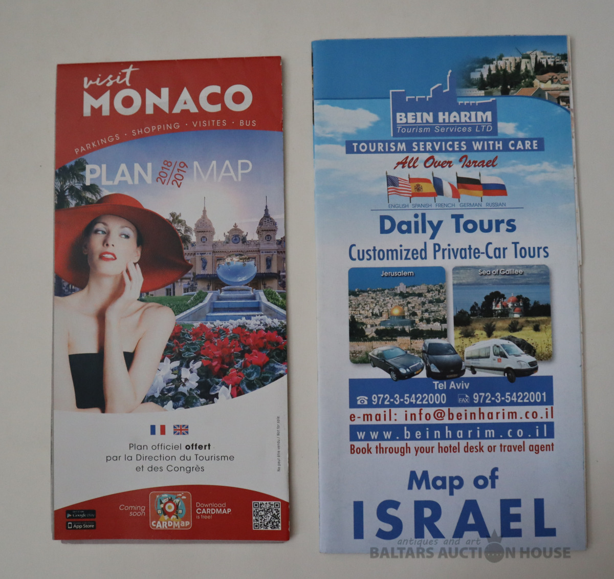 Monako un Izraēlas bukleti ar karti