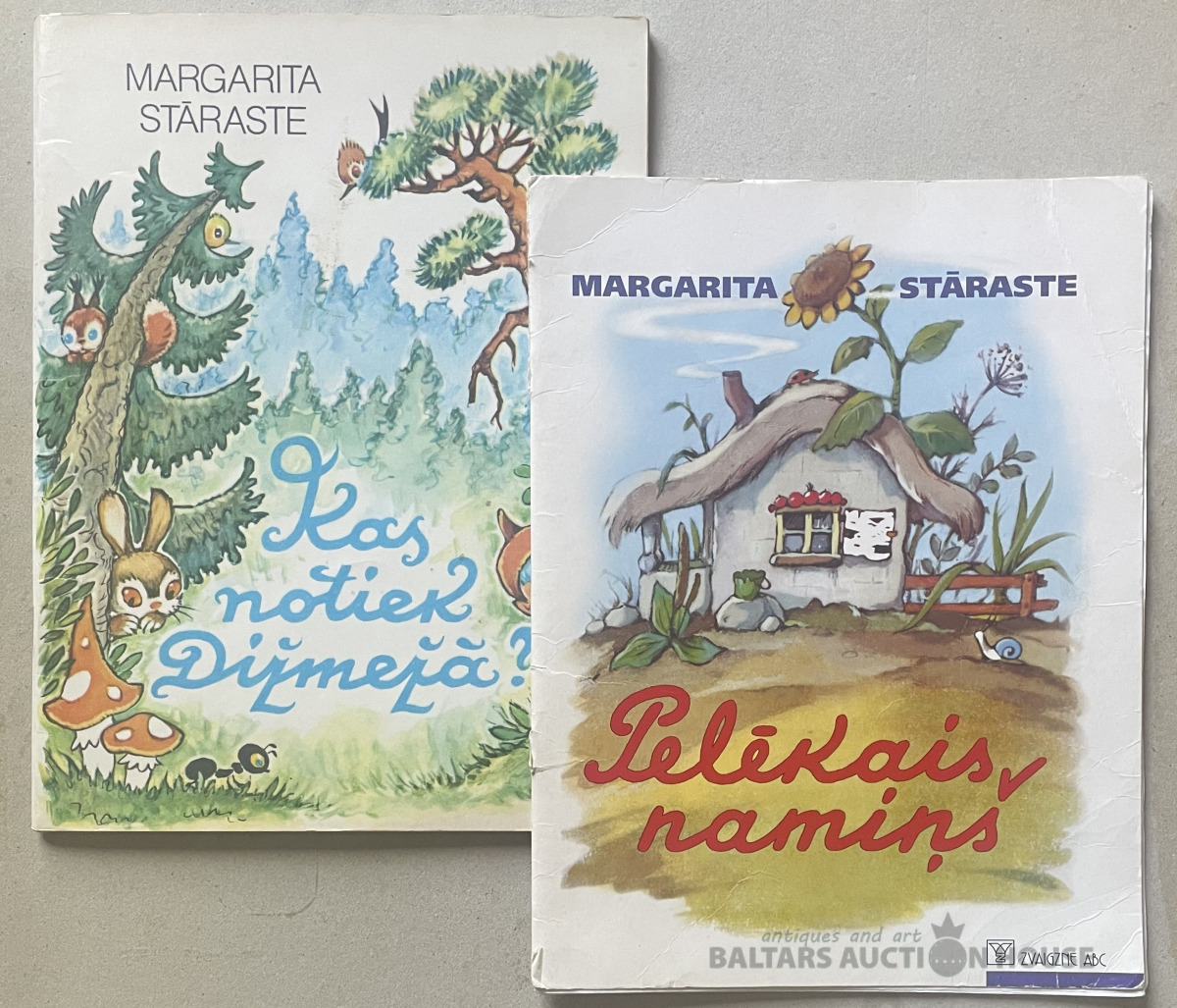 Grāmatas bērniem PELĒKAIS NAMIŅŠ 1993., neturas vākos un KAS NOTIEK DIŽMEŽĀ ? 1987.g.