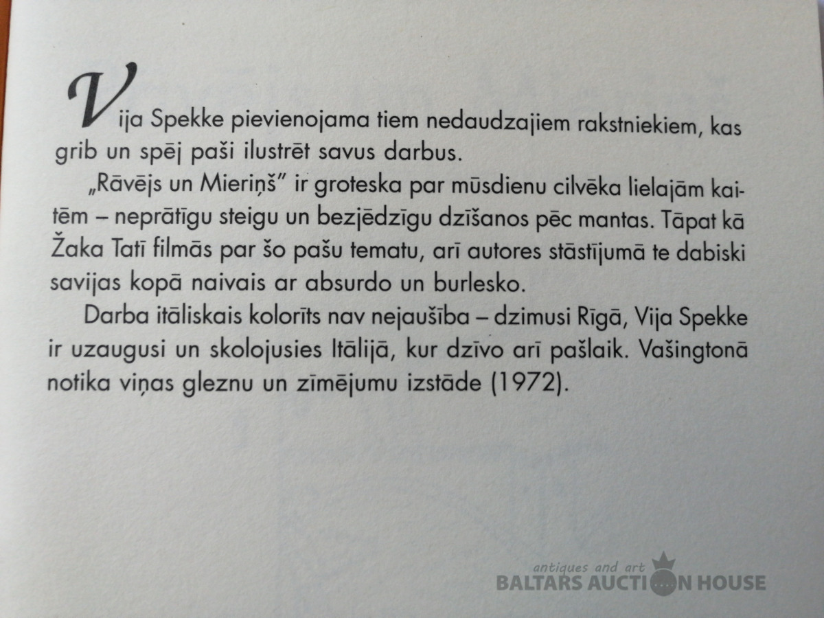 Vija Spekke “Rāvējs un Mieriņš”,Zelta grauds, 2005., autores ilustrācijas, jauna. Atkārtots Latvijas sūtņa Itālijā meitas 1976. gada “Zelta ābeles” izdevums. No itāļu tulkojusi Veronika Strēlerte