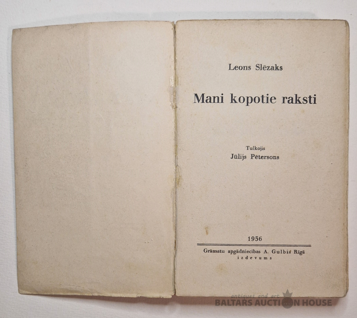 Mani kopotie raksti. Leons Slēzaks. Tulkojis: Jūlijs Pētersons. A. Gulbja apgādniecība, 1936. gads