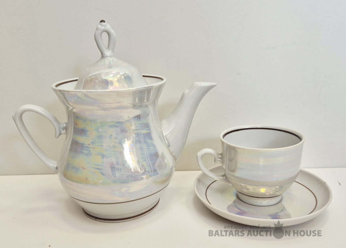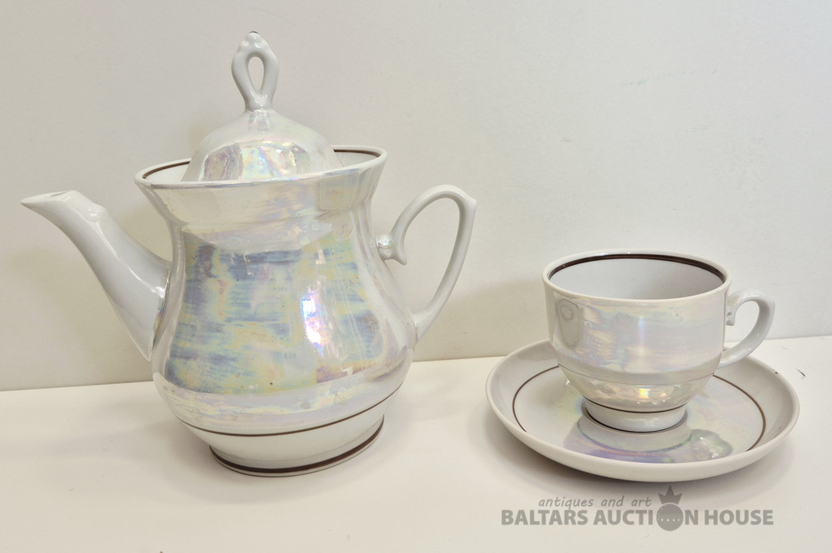 Baltkrievijas porcelāns. Dobrušas porcelāna rūpnīca (DFZ). Tējas servīzes daļas ar perlamutra (lustra) pārklājumu.