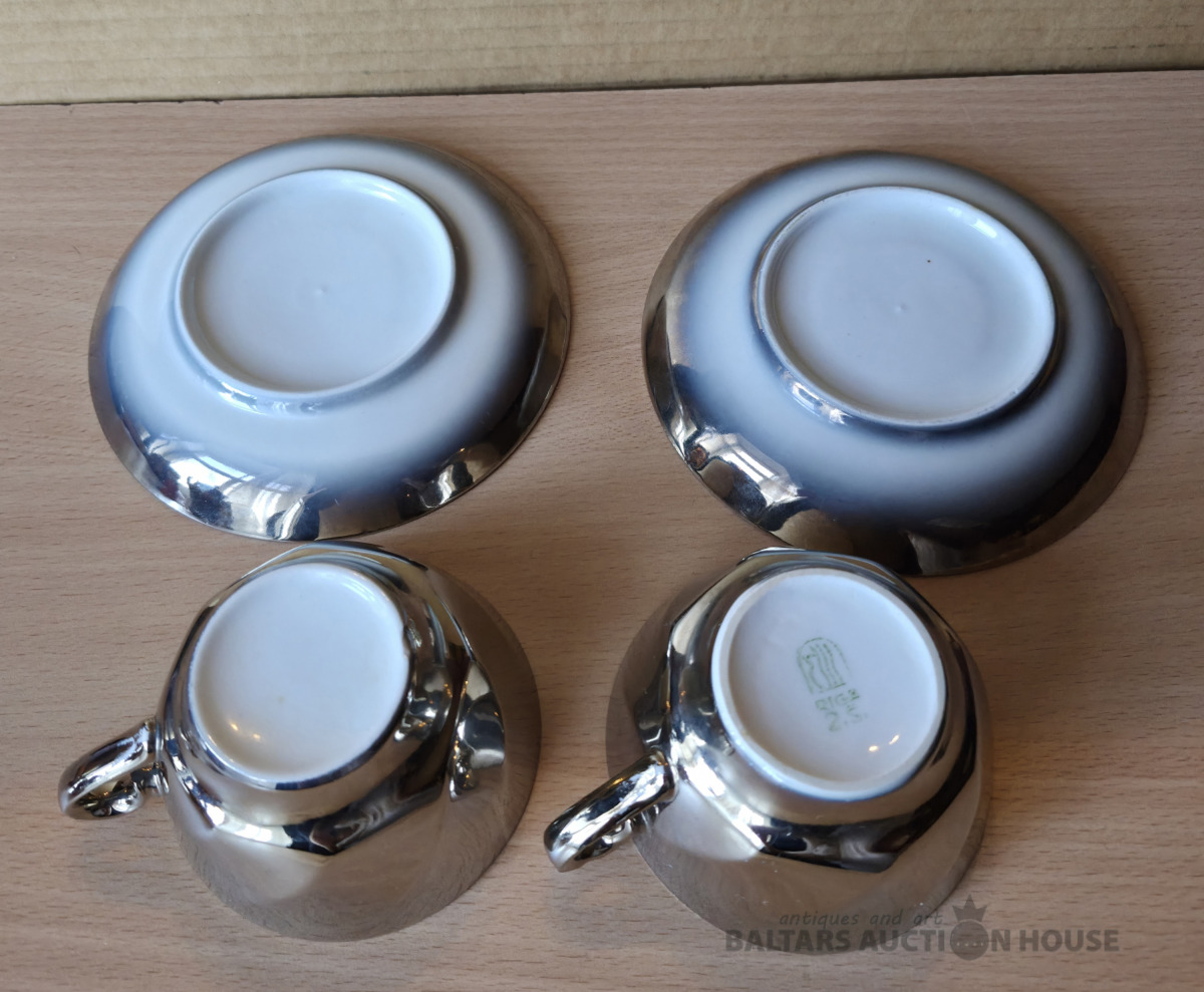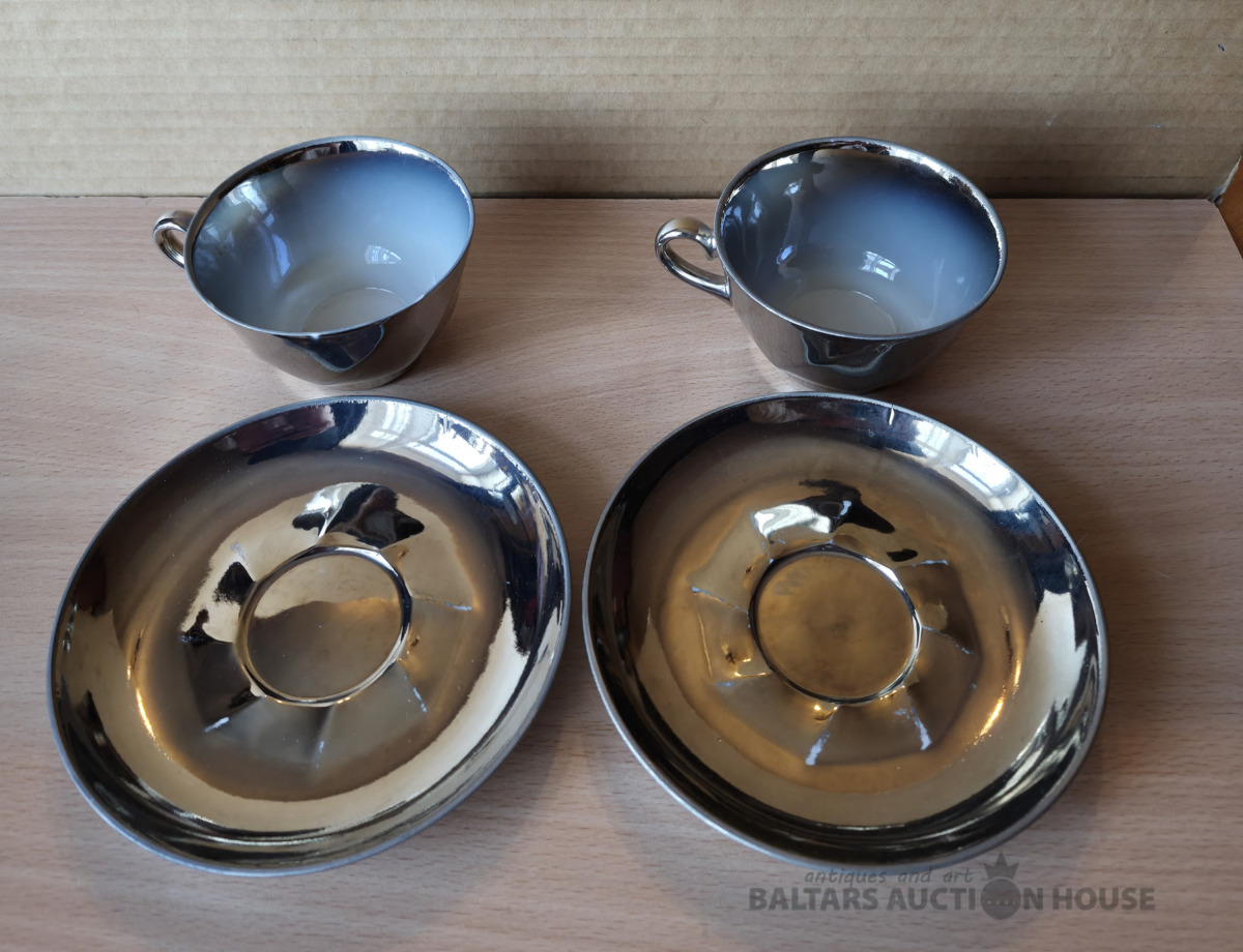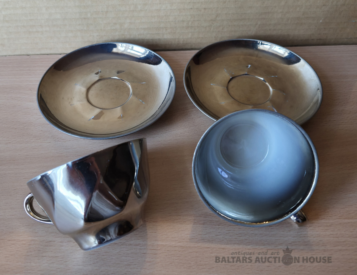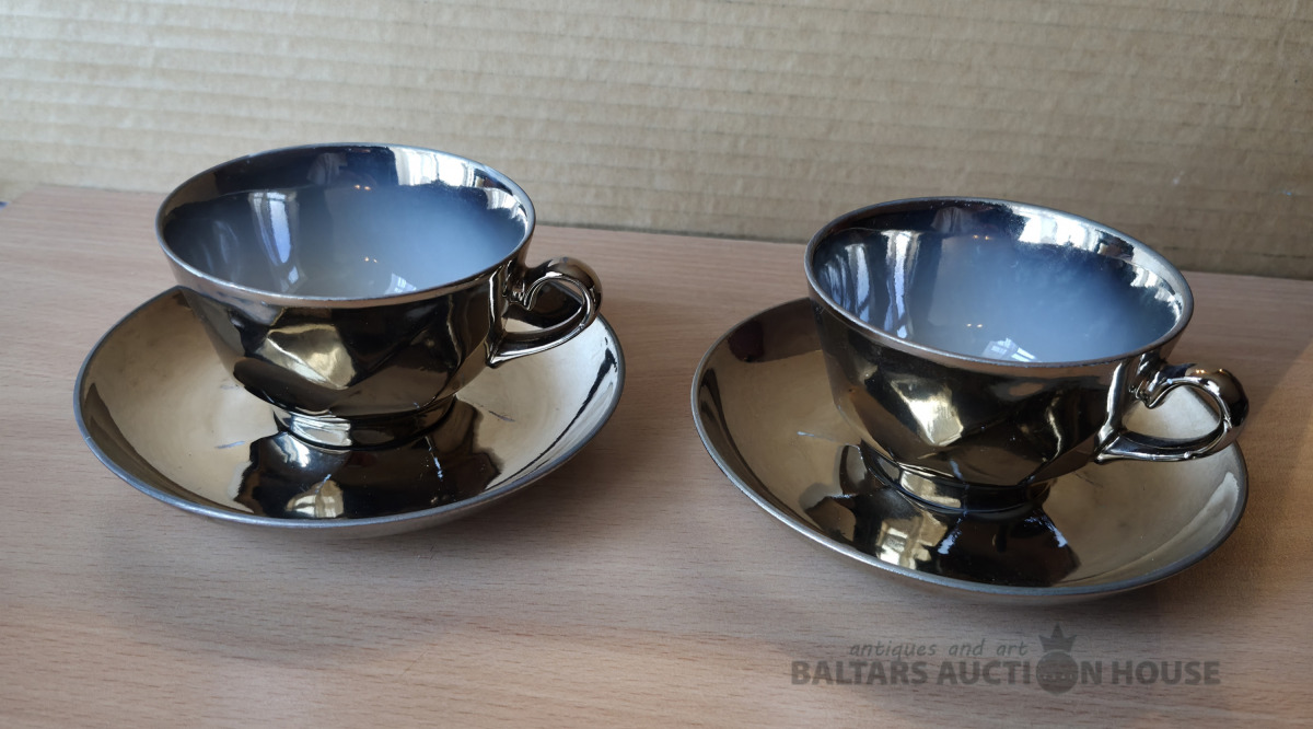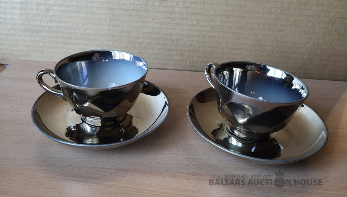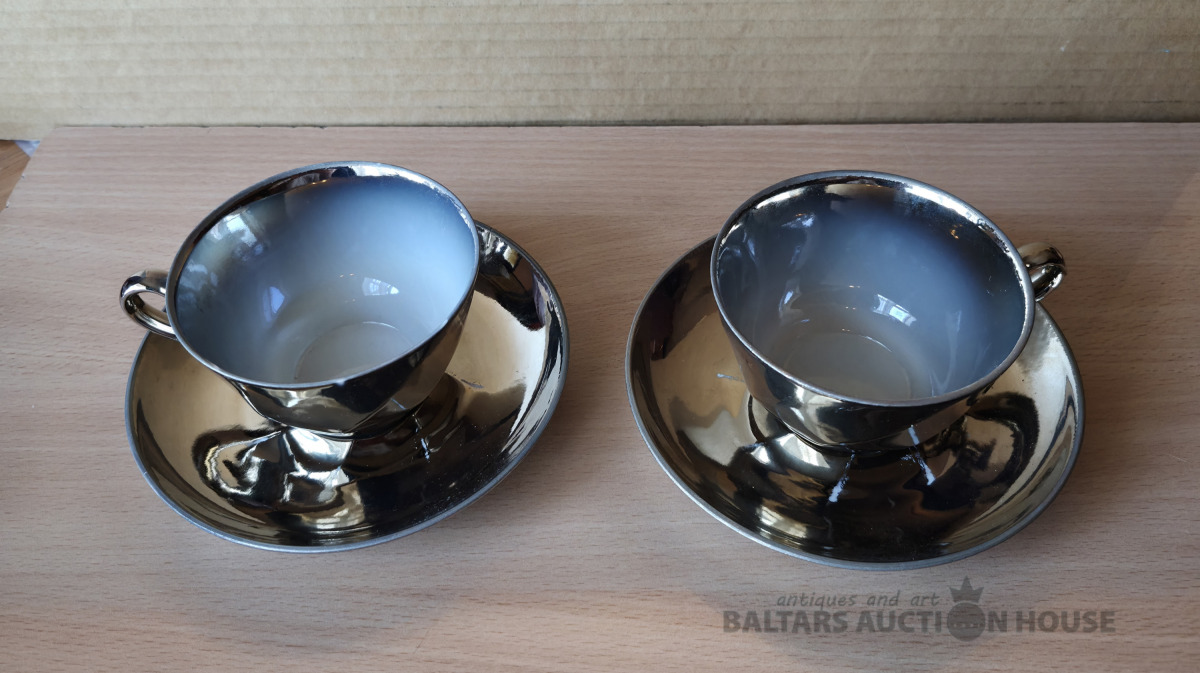 Rīgas porcelāna tējas pāris . Šķīvīšu D - 14,3 cm . Mazlietoti