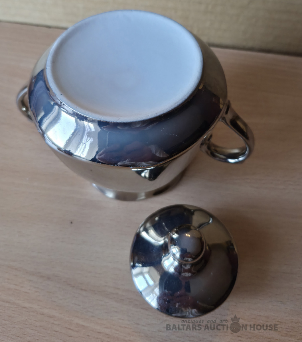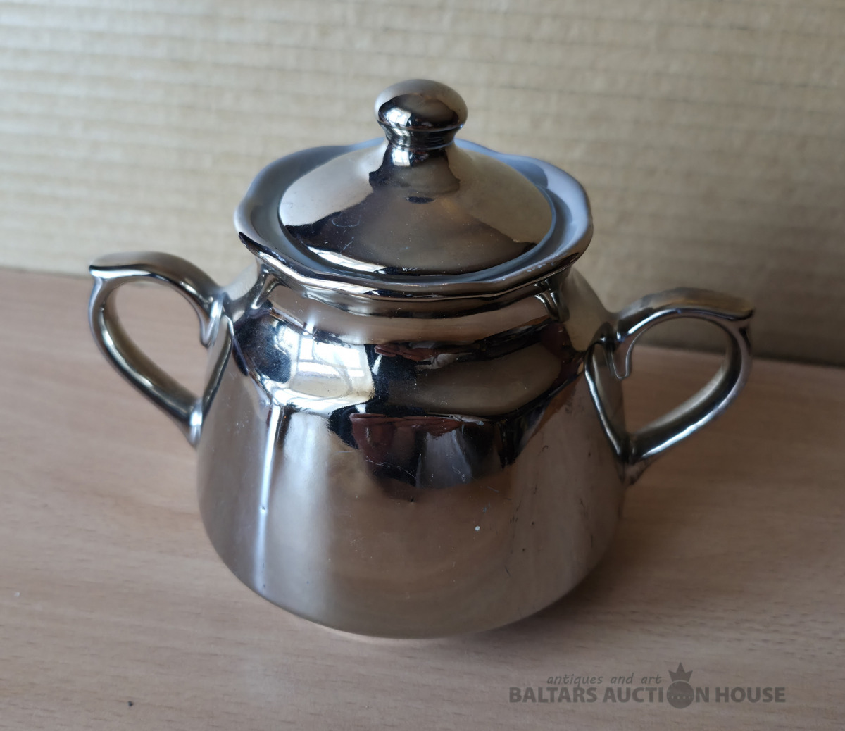 Rīgas porcelāna cukurtrauks . H ar vāciņu - 12,5 cm . Mazlietots