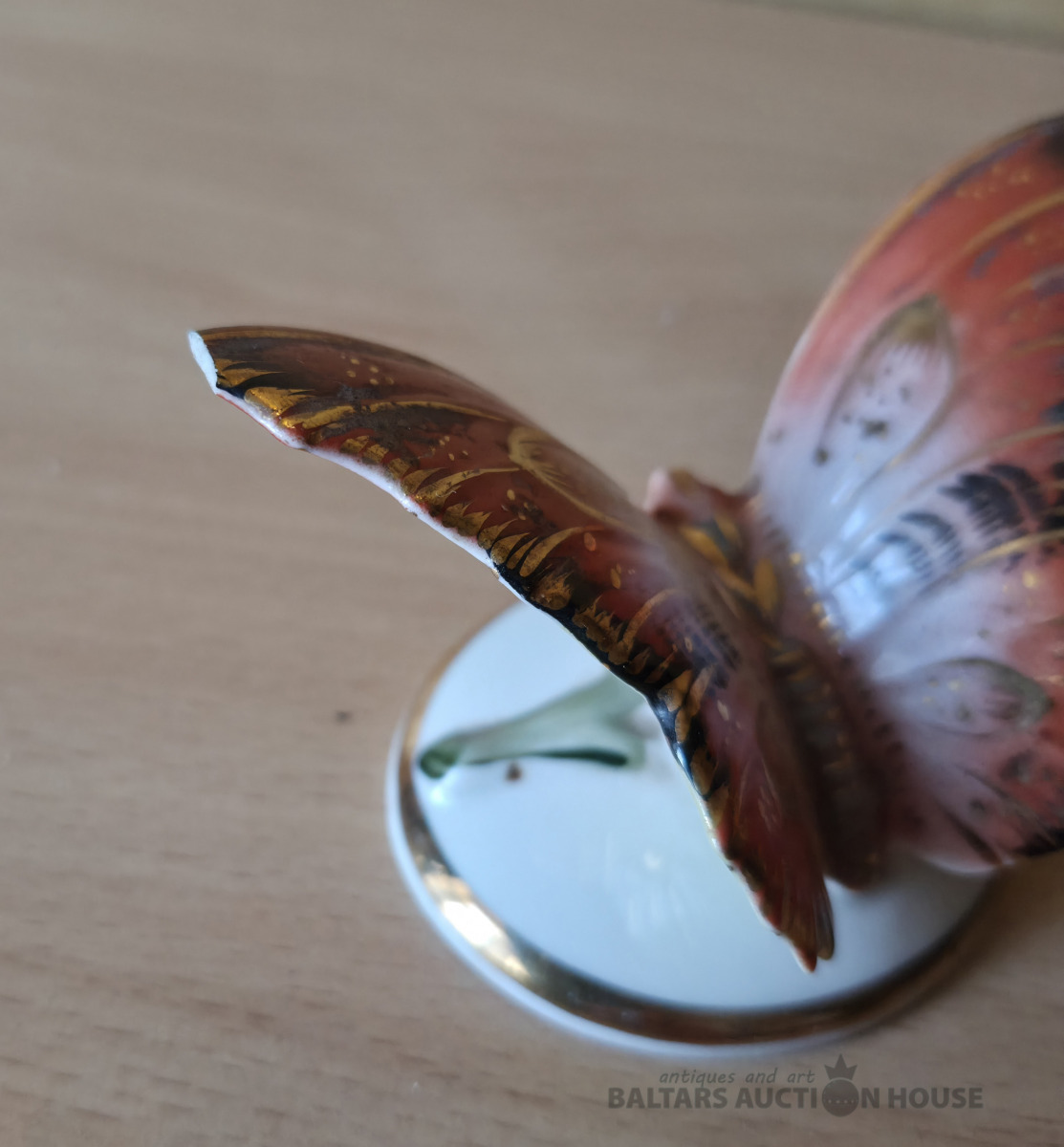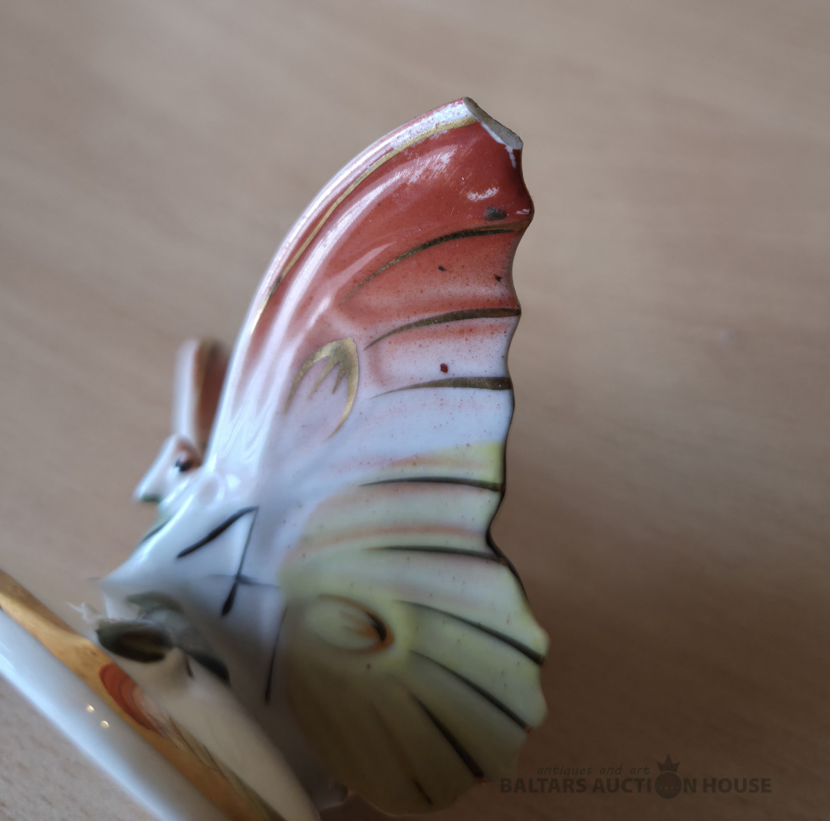 Rīgas porcelāna taurenis . Skaistas , košas krāsas bet ir defekts - nolauzts gals vienam spārnam