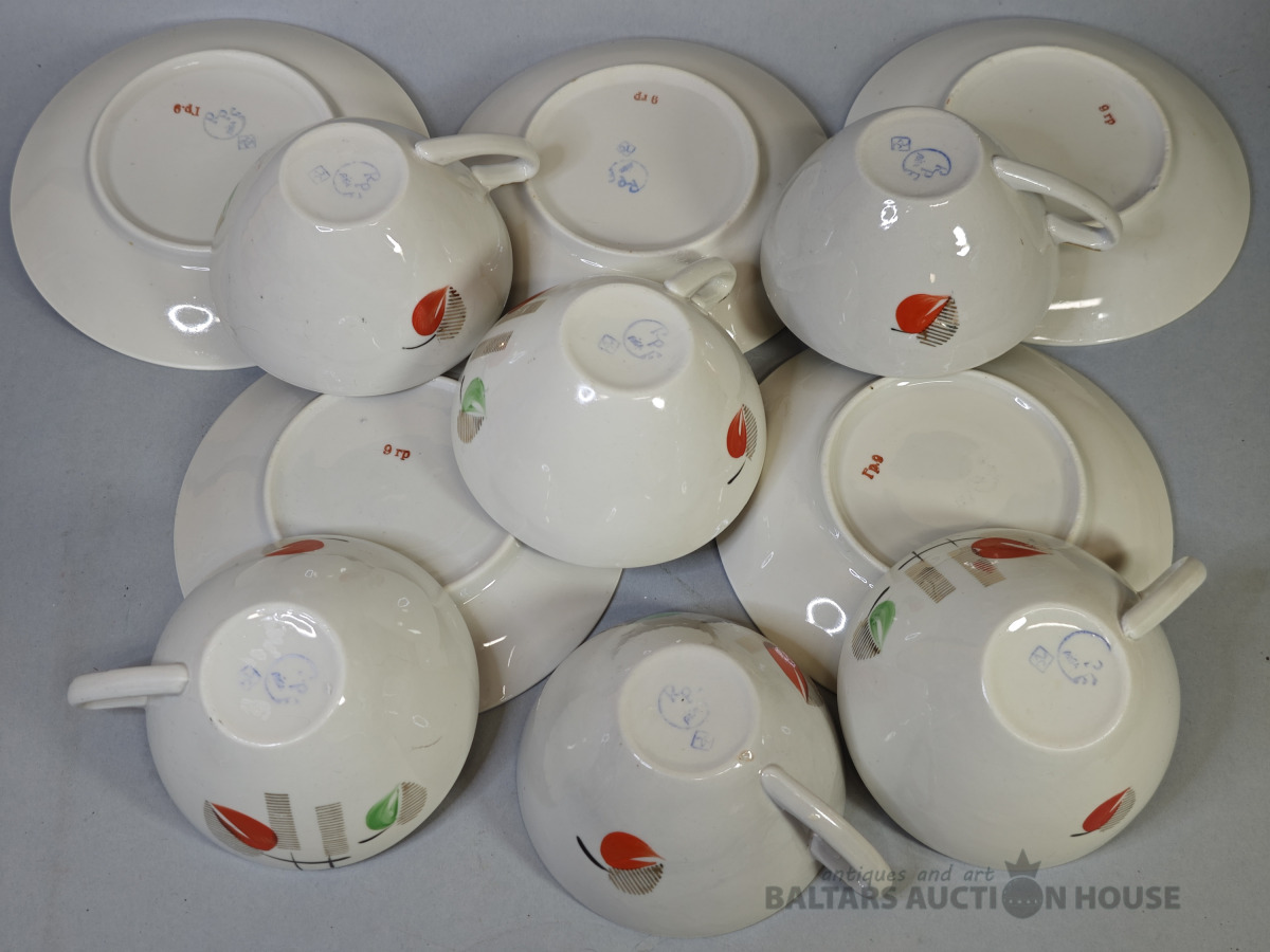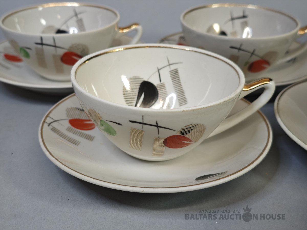 Tases ar apakštasiem SAKTA, porcelāns, RPF Rīga, bez plaisām un nošķēlumiem