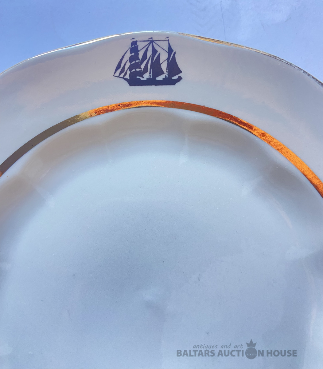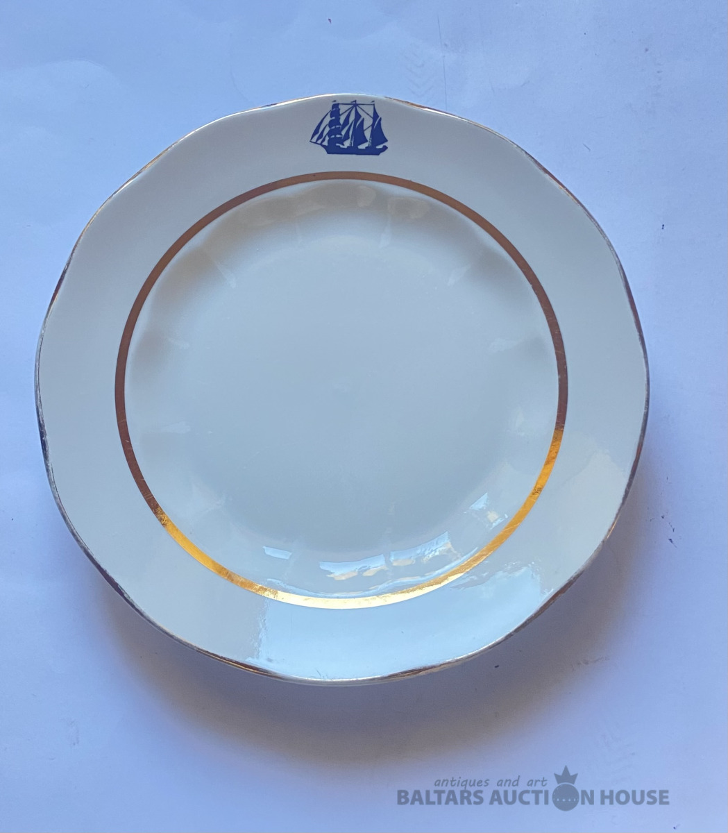 Šķīvis ar logo Kuģis RPR, D=20 cm, zelta nodilums