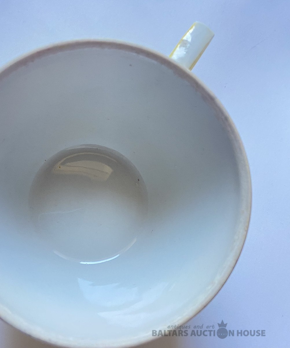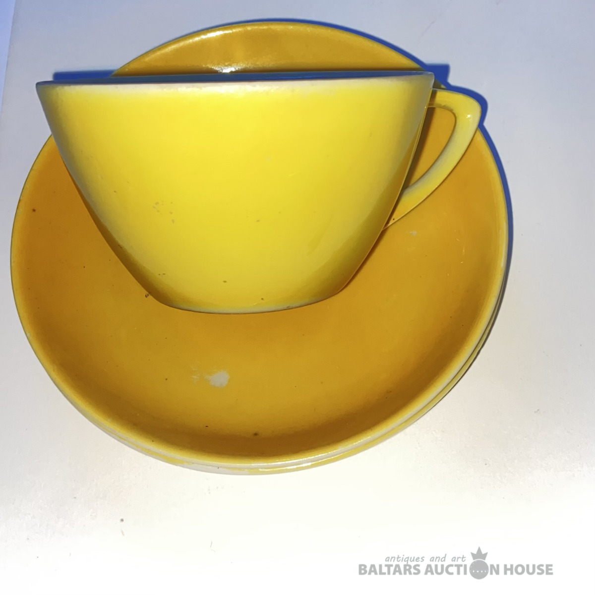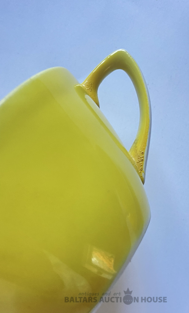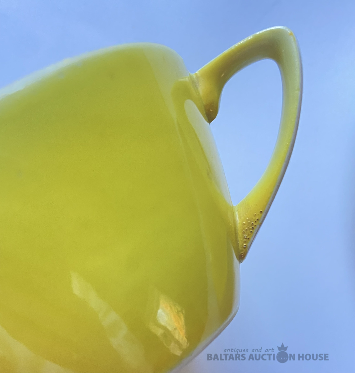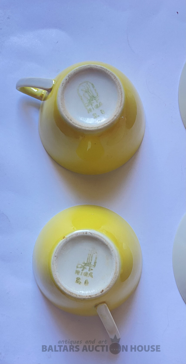 Divas duo “Ausma”, krūzēm ir gaišāka dzeltena krāsa nekā šķīvjiem,lietošanas pazīmes ,krāsas nodilums