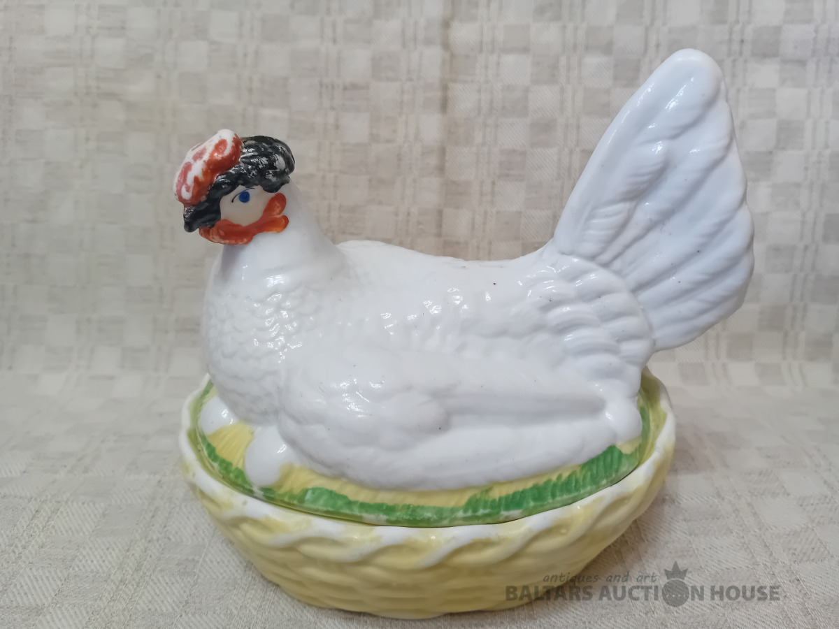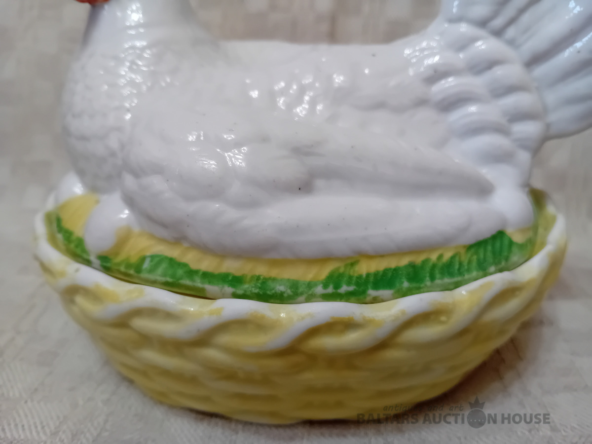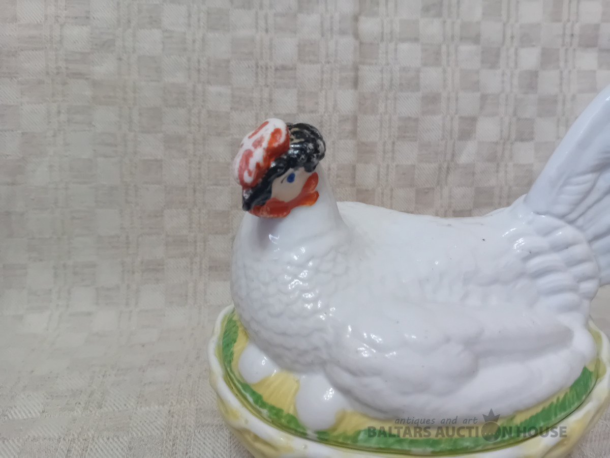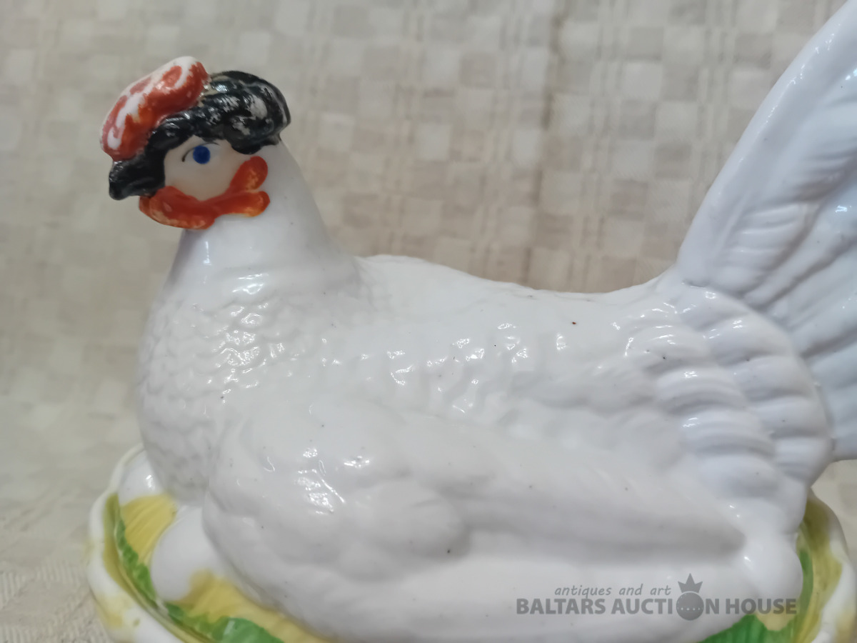 Cara laika Kuzņeovs Rīgā, sviesta trauks, pocelāns,14.5*11.5 cm, 4.5 cm h-pamatne, ir defekti, Vākam iekšpusē zirnekļa veida plaisa, kas daļēji iznāk virspusē, robs,astei glazūras atsitums, pamatnē veca plaisa, kas turpinās, kā ""svaiga""