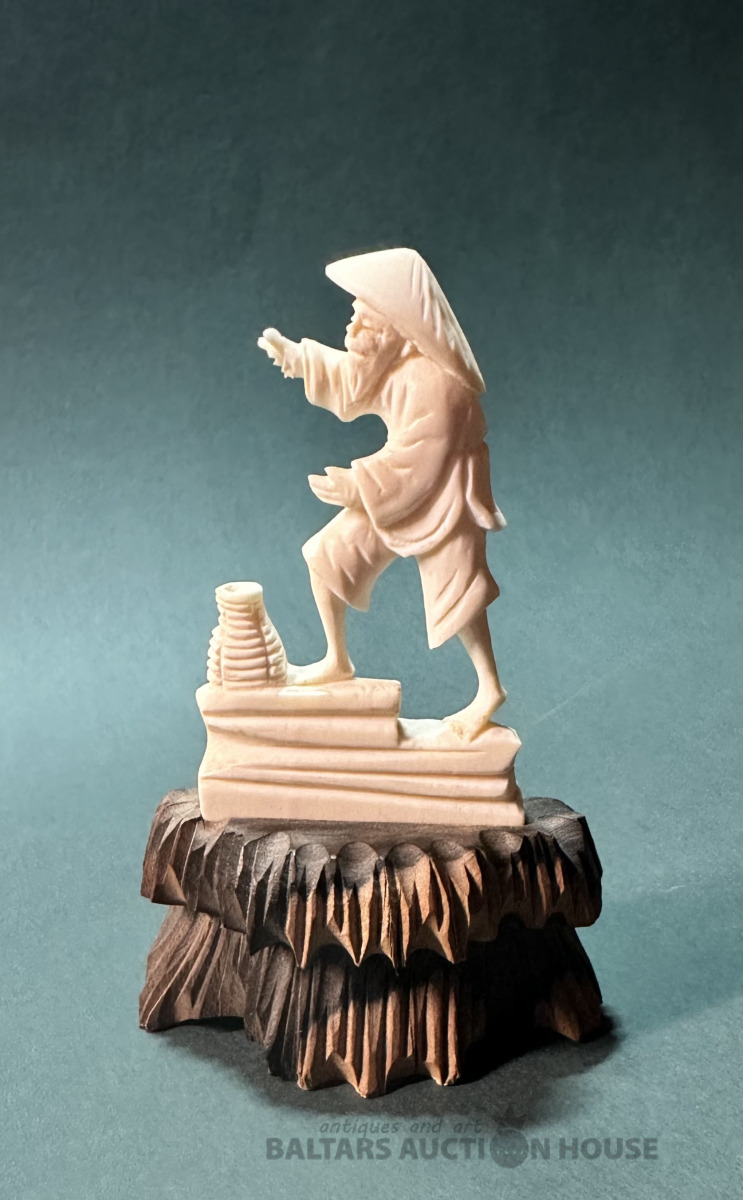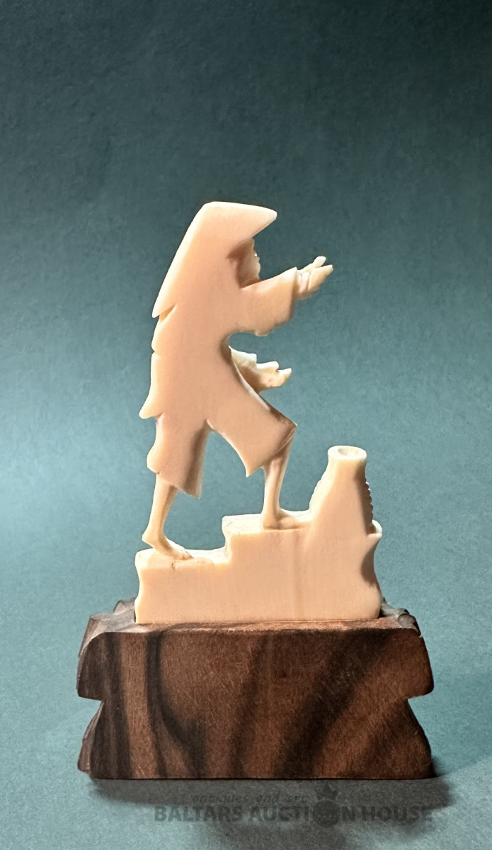 Figūriņa, kokgriezums un dabīga kaula grebums, augstums 10.5 cm.