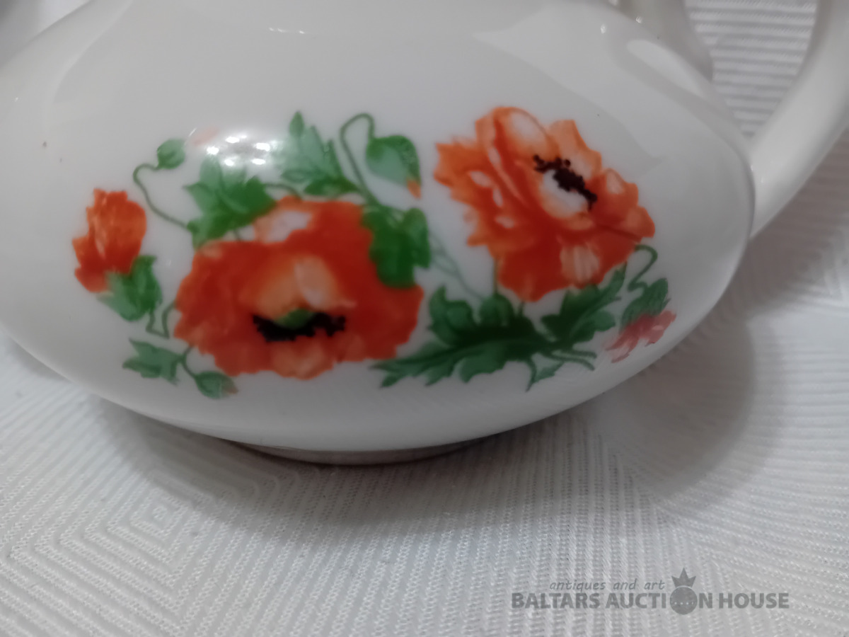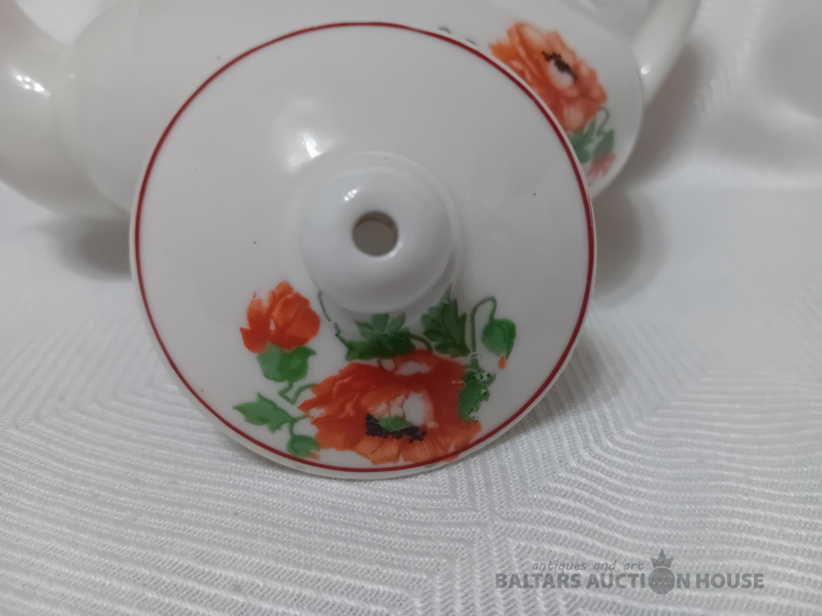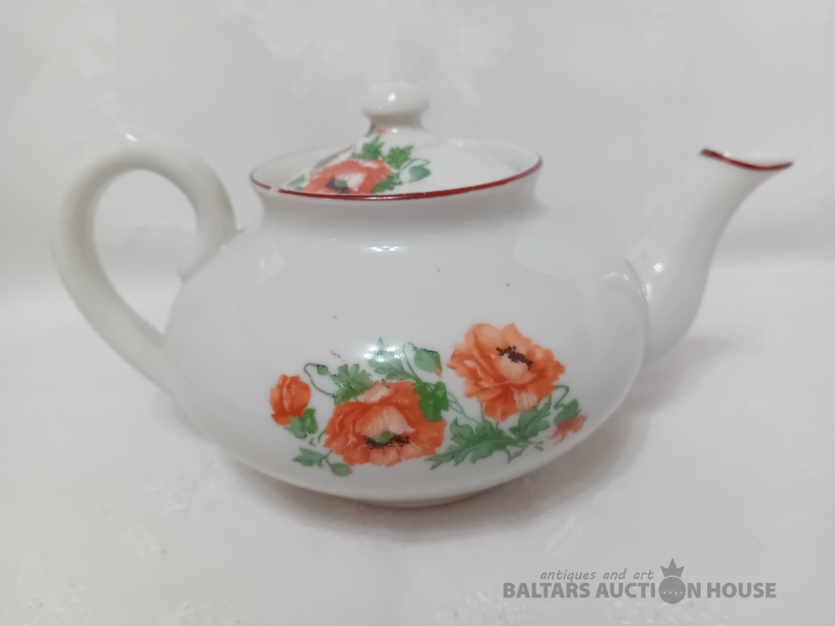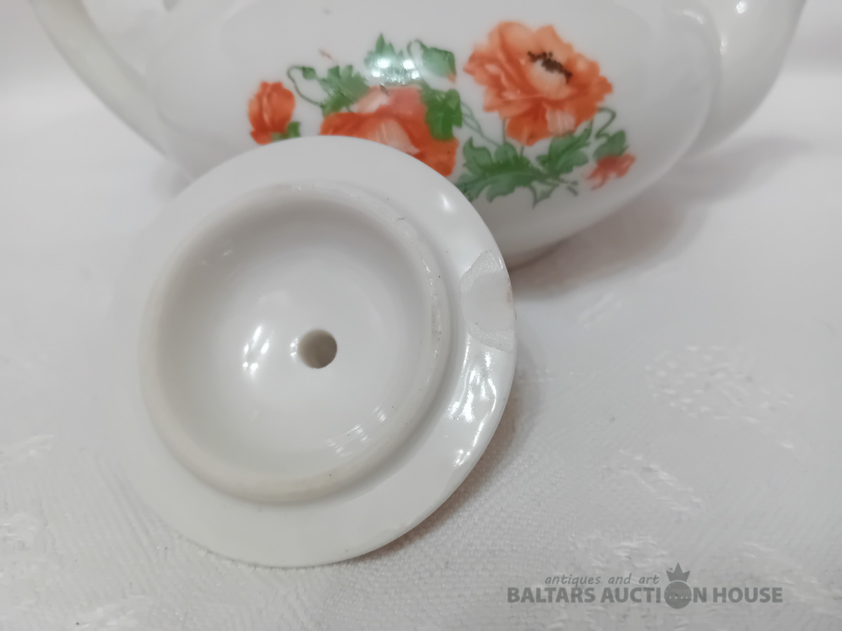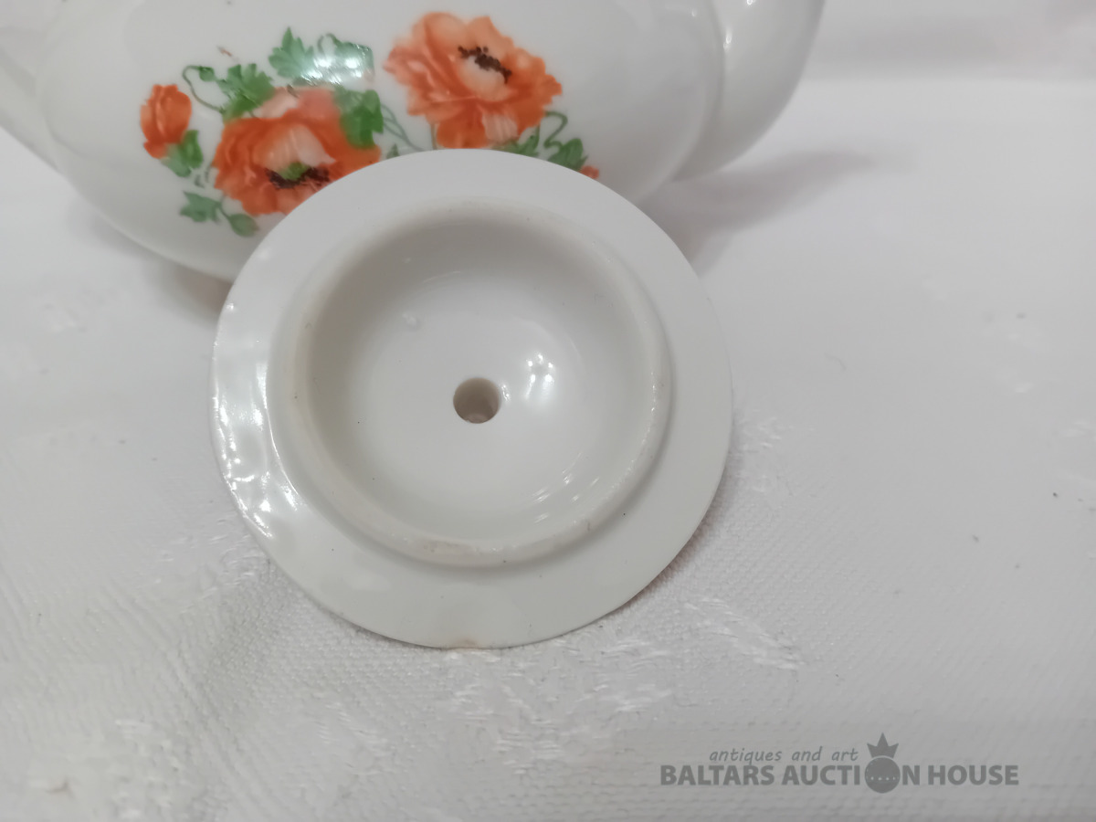 Porcelāna tējas kanna, Dmitrovas p.r. Verbilki, 1940-1946. g. zīmogs, lietots, vāciņam defekts, Vāciņam atsitums