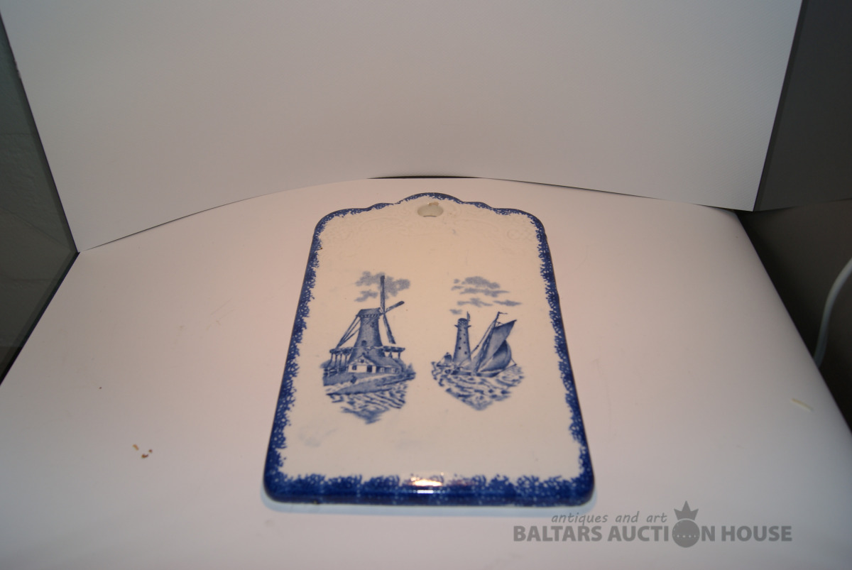Siera dēlis, klasisks holandiešu stila dekors zilā krāsā. Porcelāns, 21x12,5 cm