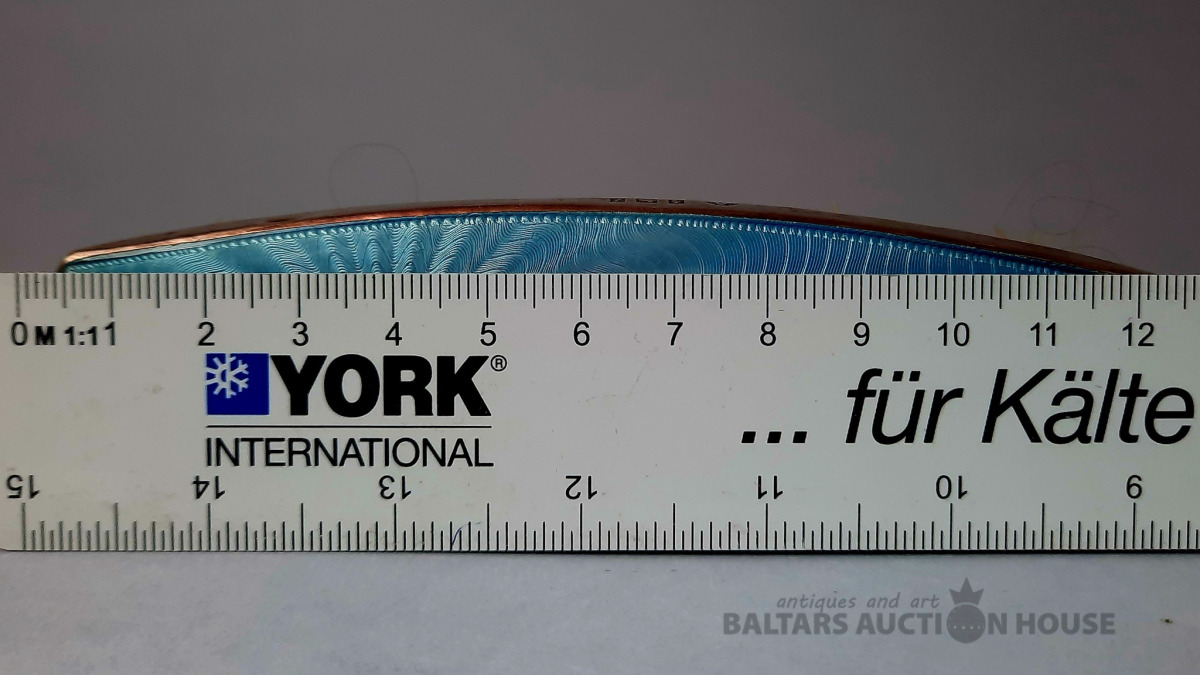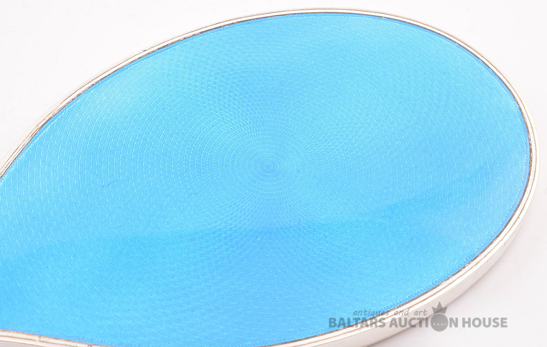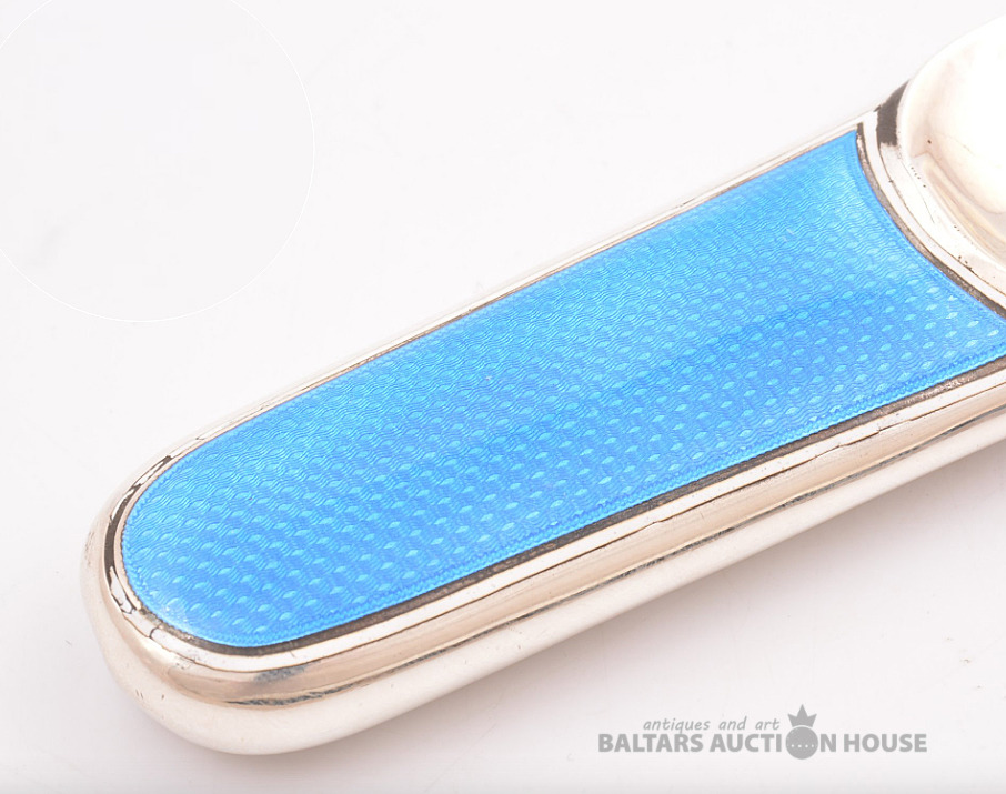 Apavu lāpstiņa, spilgti zila giljošas emalja, 950 proves raudze, 86,50 g, emalja, 19 cm, 20. gadsimts, Francija.