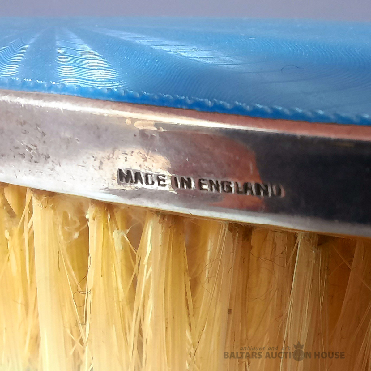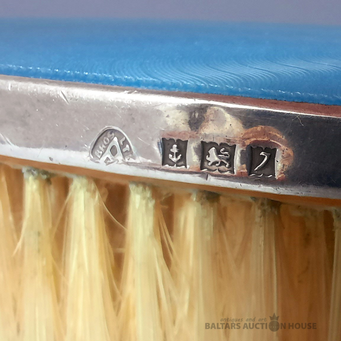 Antīka giloša ota. Antīka angļu giloša emaljas drēbju ota piesātināti zilā krāsā. Sudrabs, giloša, emalja, koks, dabīgi sari. 13,5 cm. Nolietojuma pazīmes. Skaists, krāsains priekšmets unikāla stila radīšanai jūsu mājās.
