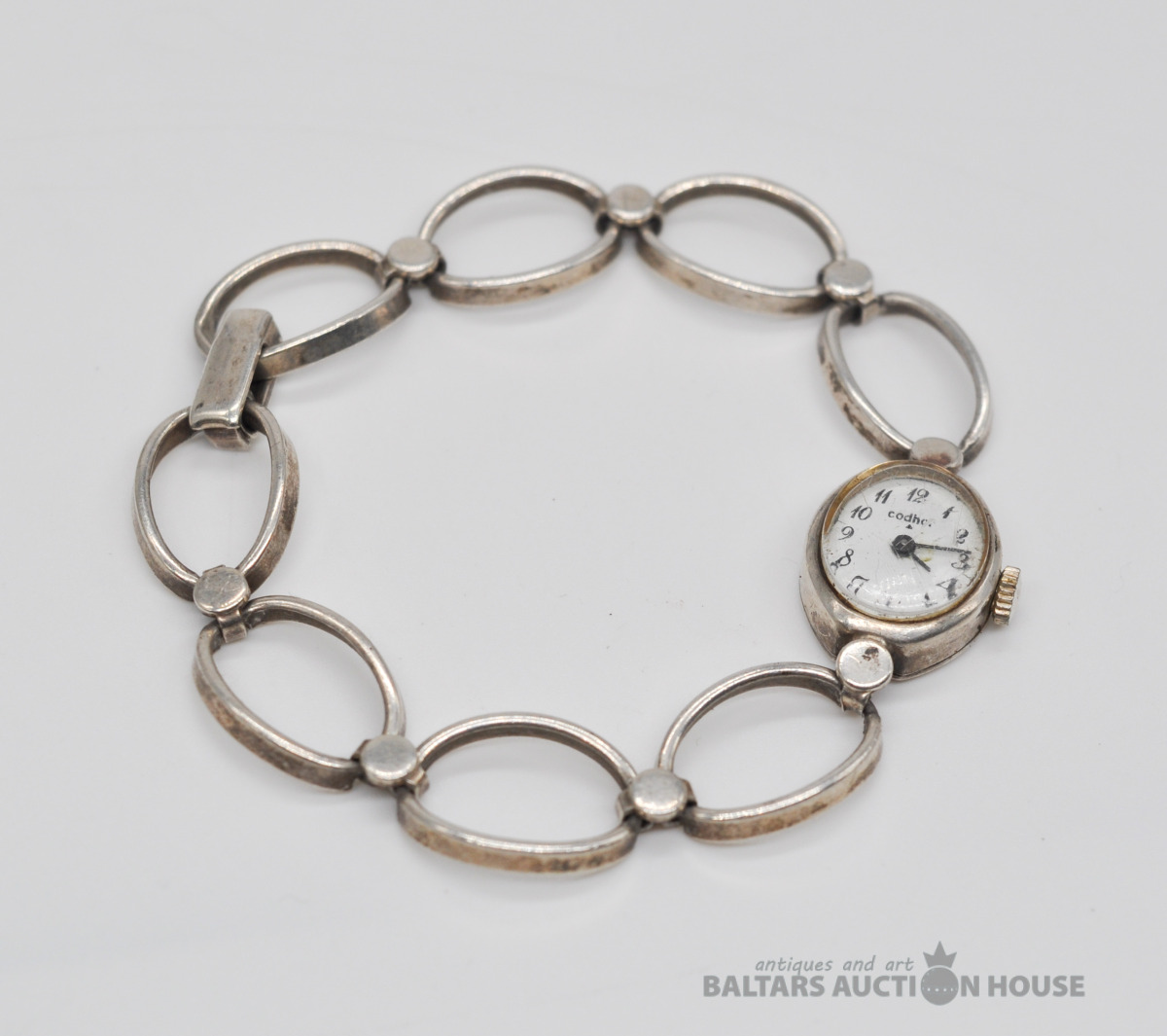 800 sudraba sieviešu rokas pulkstenis. Nestrādā. Svars bez mehānisma 16.5 grami.