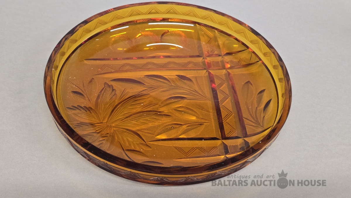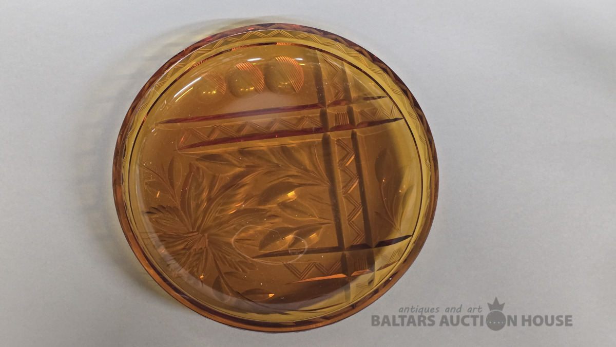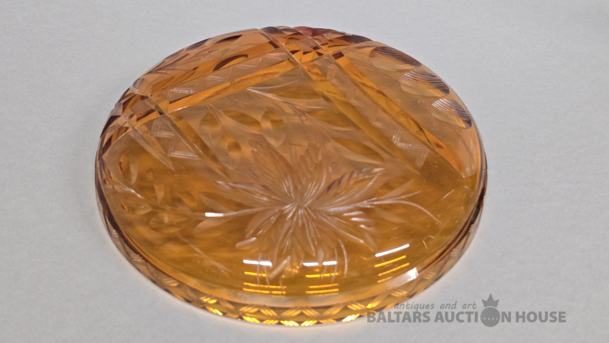 Krāsainā stikla paplāte. Iļģuciema stikla fabrika. D 26 cm.