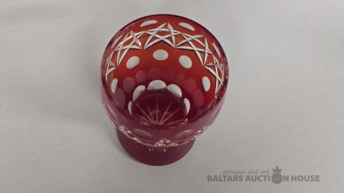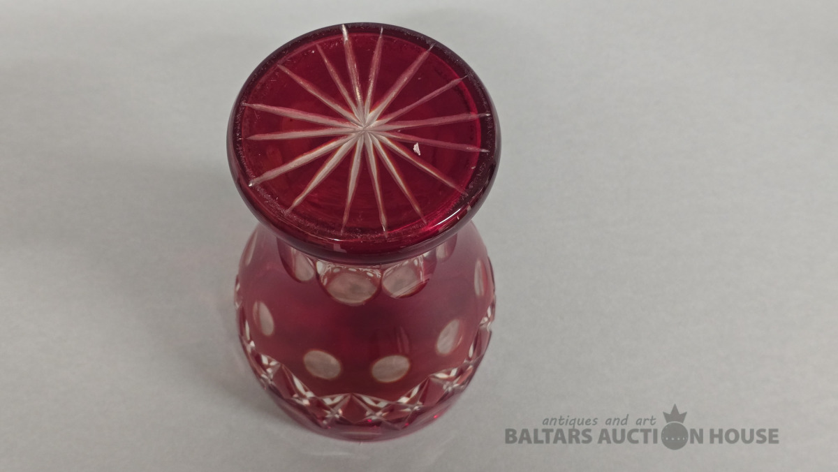 Krāsainā stikla vāze. H 17 cm. Iļģuciema stikla fabrika. Divkrāsains stikls,slīpējums.