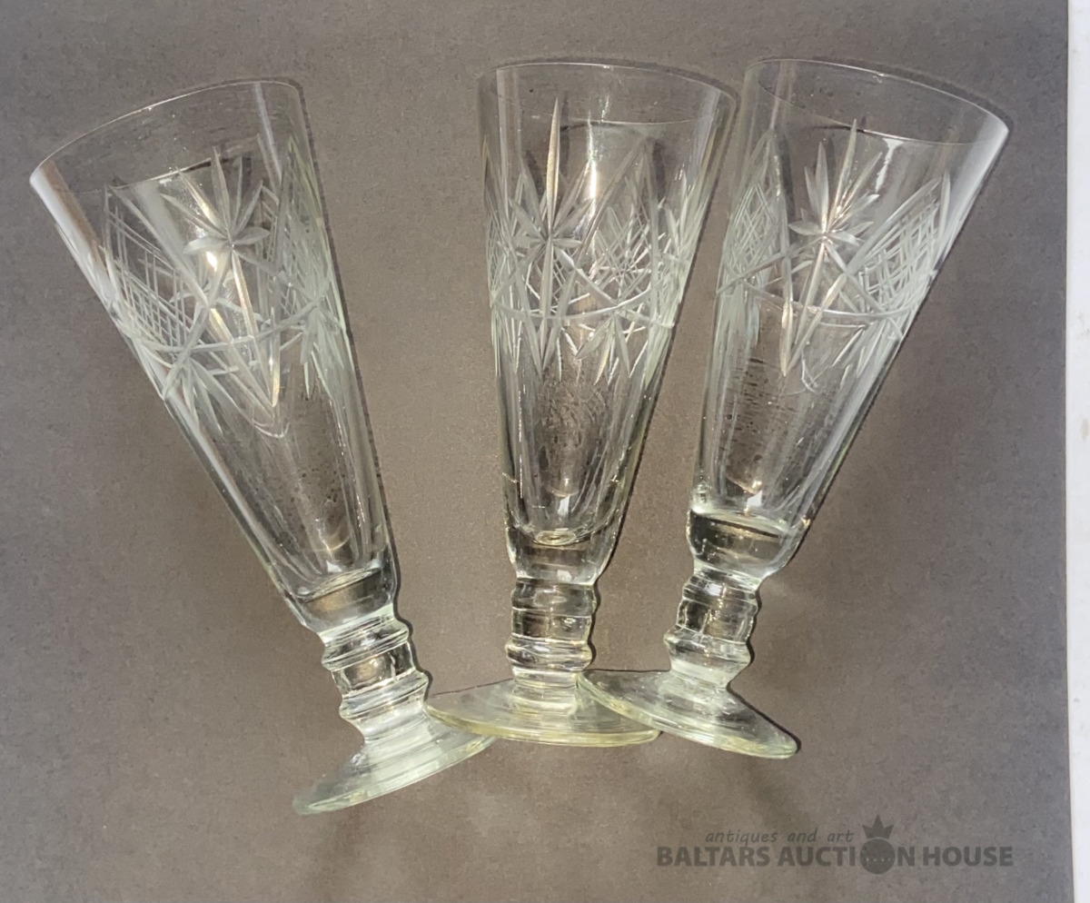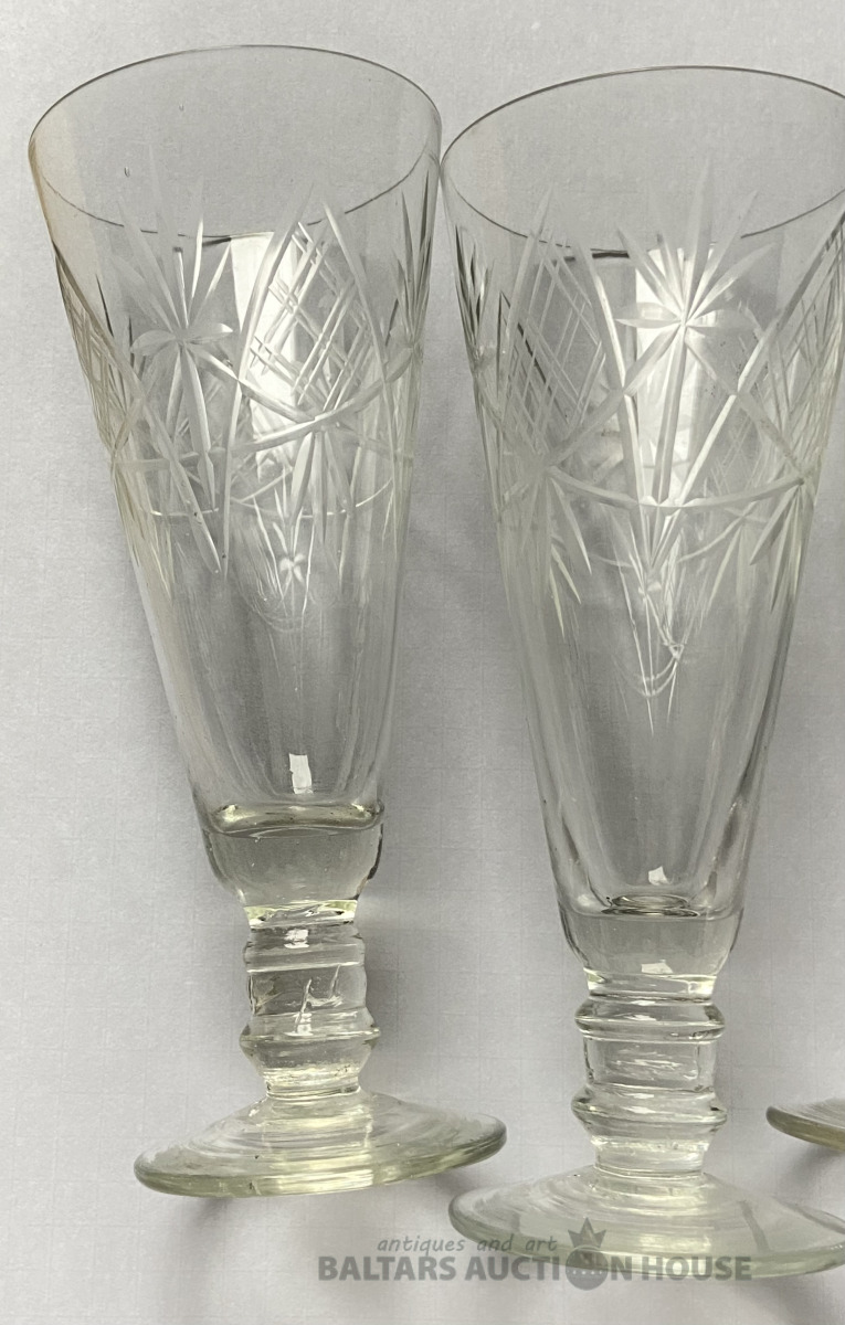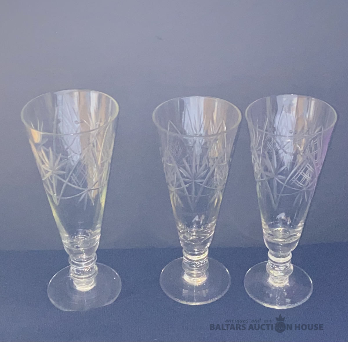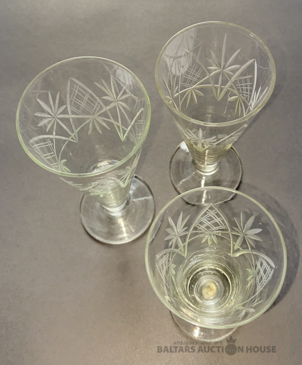 plāna stikla caurspīdīgas glāzītes , Iļģuciema stikla fabrika? Roku gravēšana , H= 11 cm (2.gb), 11,5 cm-1.gb.