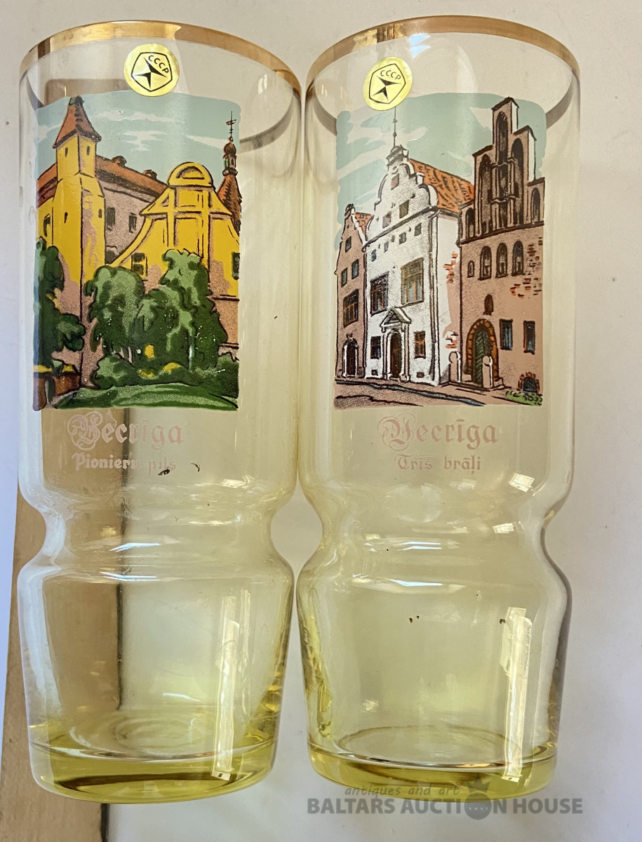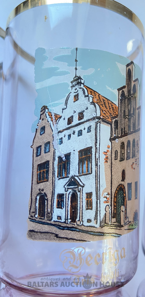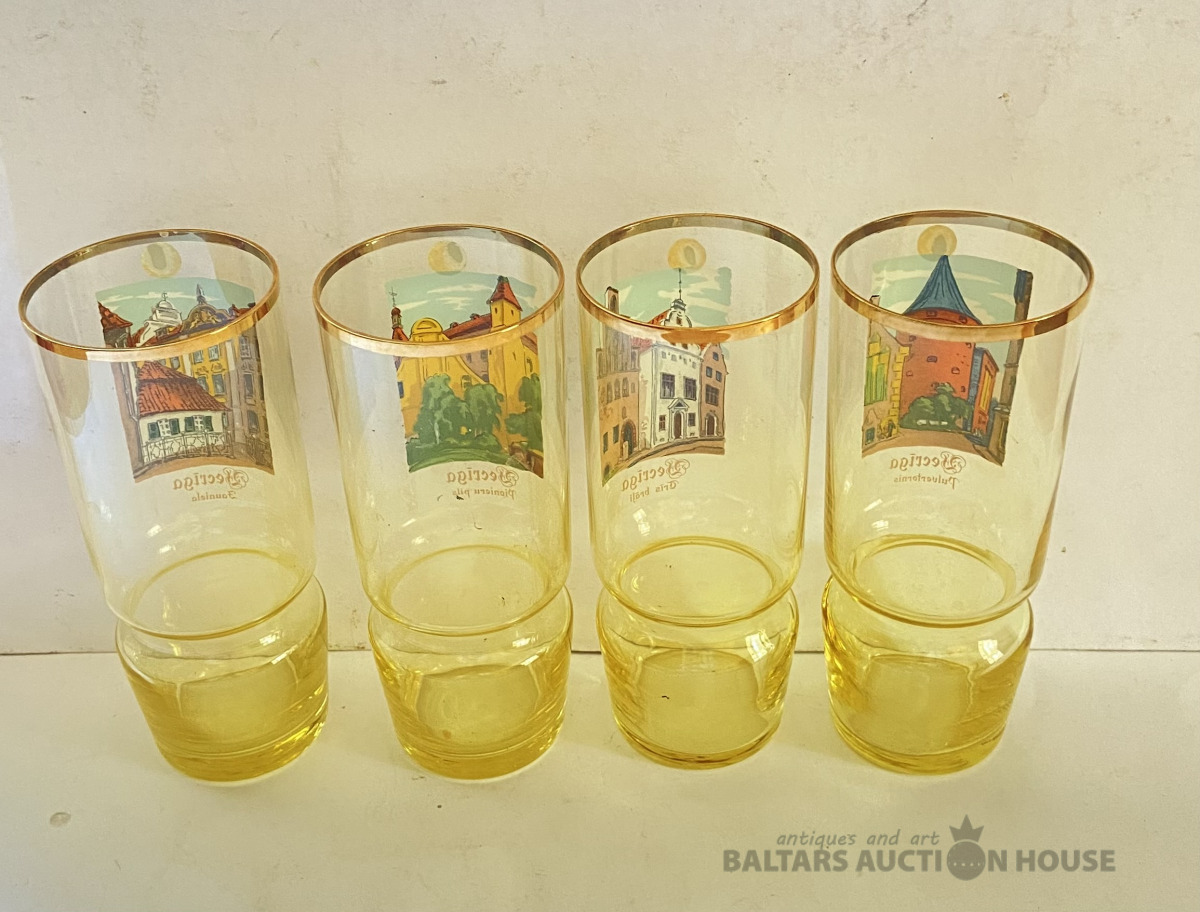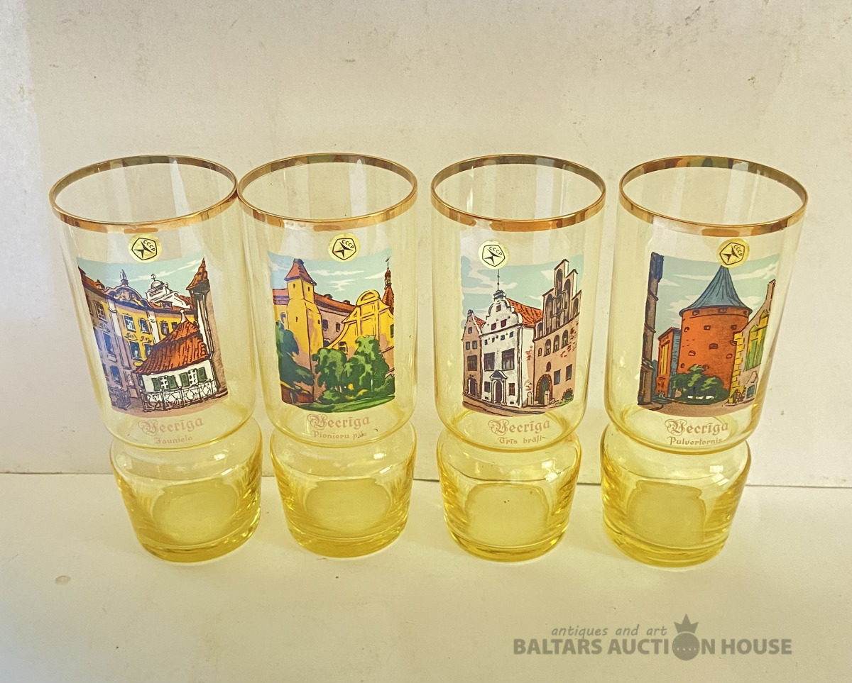 Četras glāzes “Vecrīga”,Latvijas stikls. H= 14,5 cm