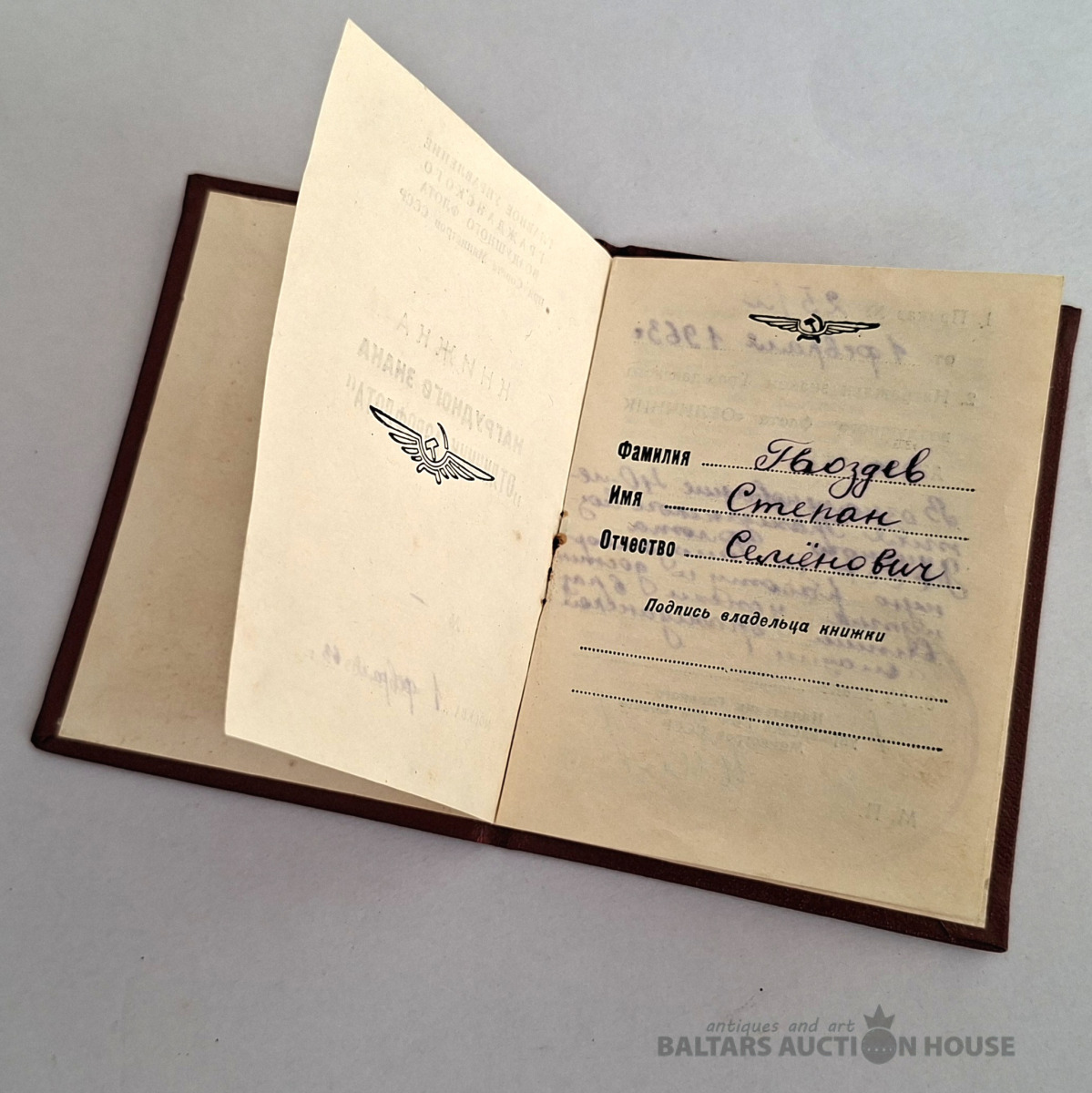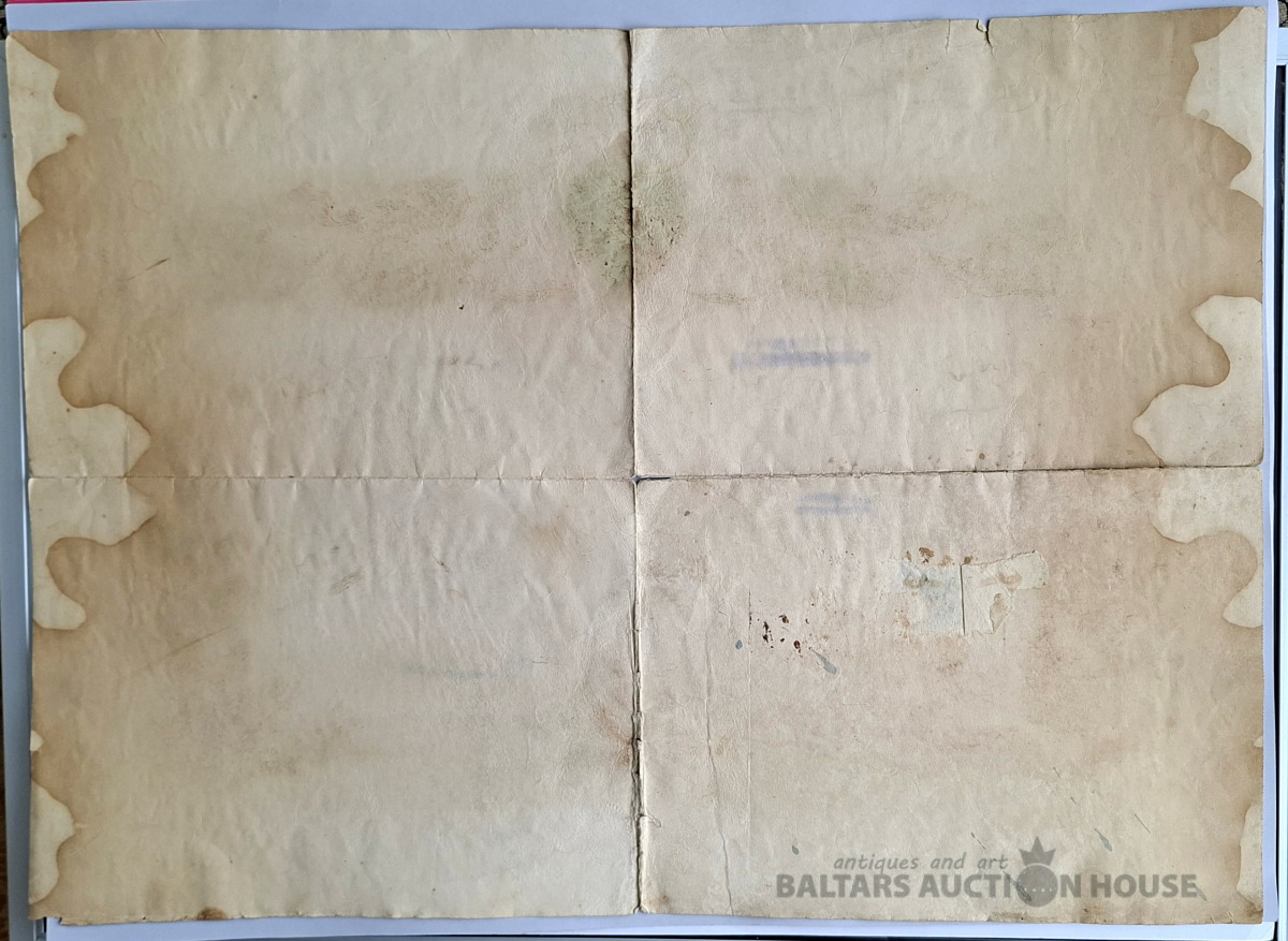 Šis priekšmets ir vēsturisks dokuments no Krievijas impērijas, acīmredzot amatnieka apliecība par meistara titula iegūšanu. Objekta veids: Antīks papīrs, vēsturisks dokuments vai harta. Saturs: Teksts apstiprina pārbaudījumu nokārtošanu un meistara titula iegūšanu, piešķirot likumīgas tiesības praktizēt amatu. Dizains: Dokuments ir dekorēts ar Krievijas impērijas valsts emblēmu (divgalvainais ērglis) un 20. gadsimta sākumam raksturīgiem mākslinieciskiem elementiem. Stāvoklis: Dokumentam ir redzamas vecuma pazīmes, tostarp locījuma radītas krokas.