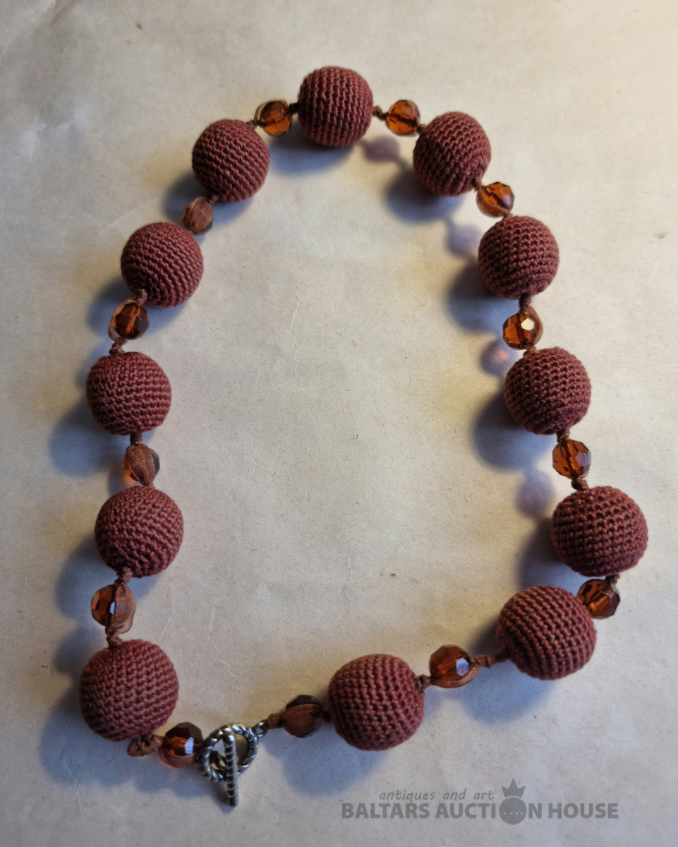 Bižutērija, ap kaklu liekama rota. Koks, audums, plastmasa.