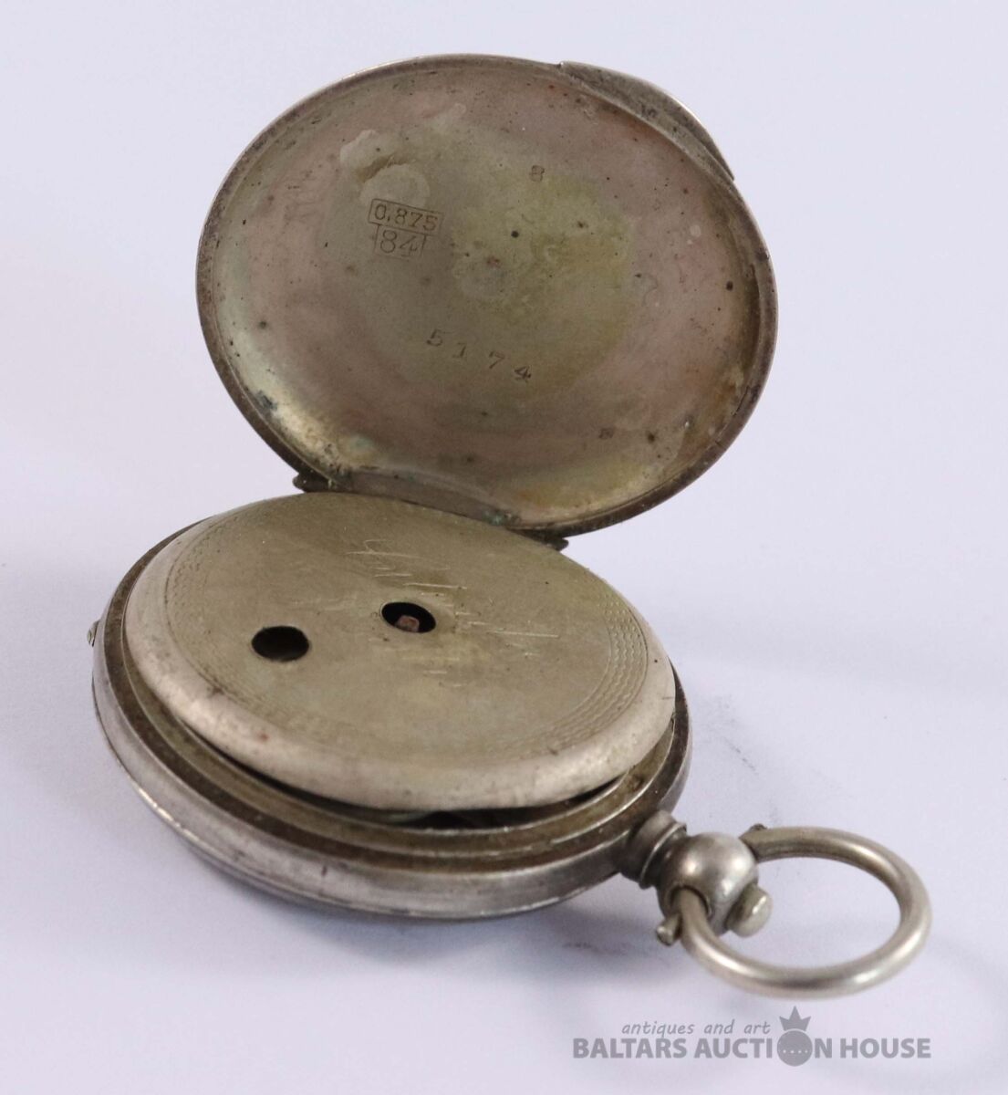 Korsāžas pulkstenis. Sudrabs 875. Svars 26,87 gr. d=3,2 cm