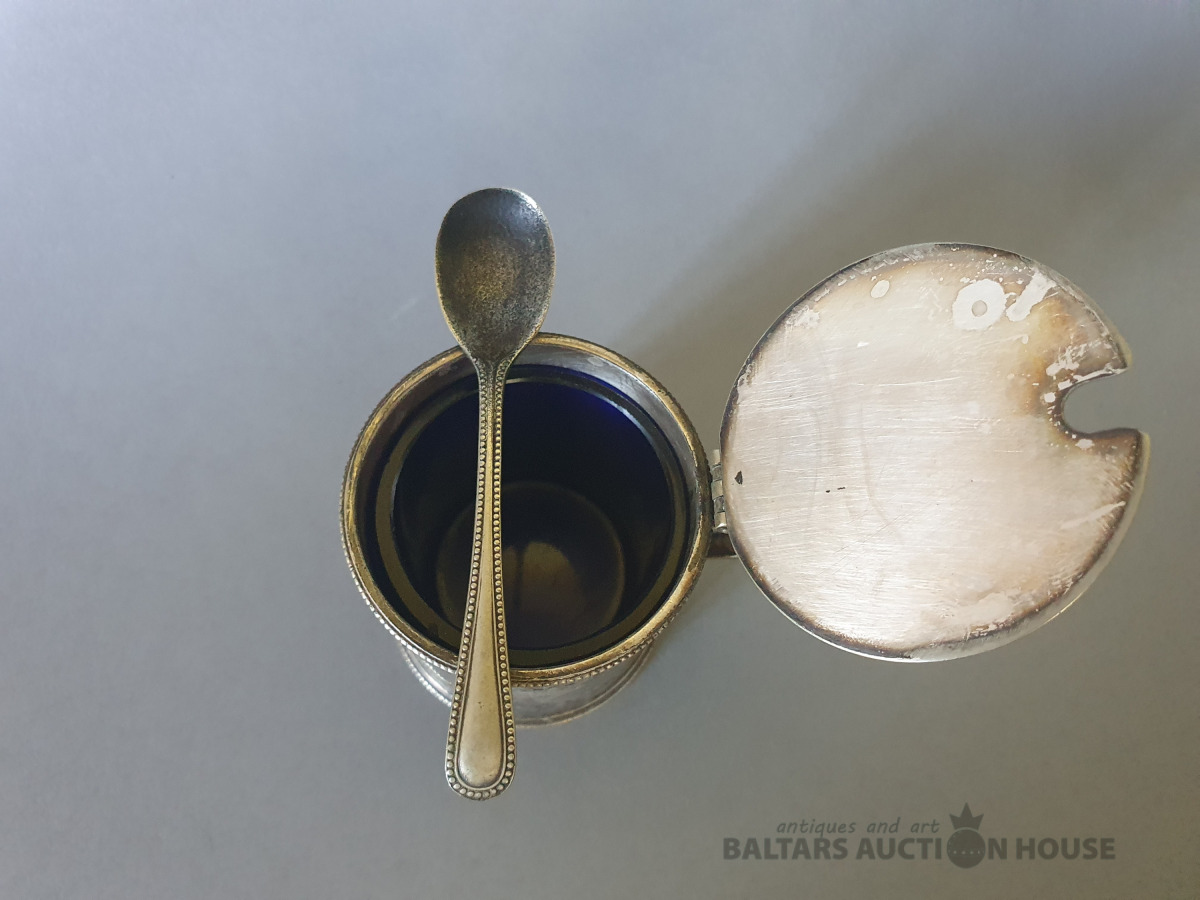 Sinepju trauks.Apsudrabots metāls,iekšpusē stikls. H 7 cm.d 6 cm.