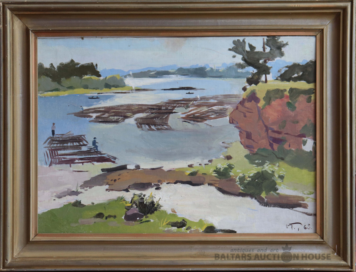 Velta Toropina 1925. -2007. BAĻĶU PLUDINĀŠANA. Audekls, kartons, eļļa. 49x70 cm. 1963. g.