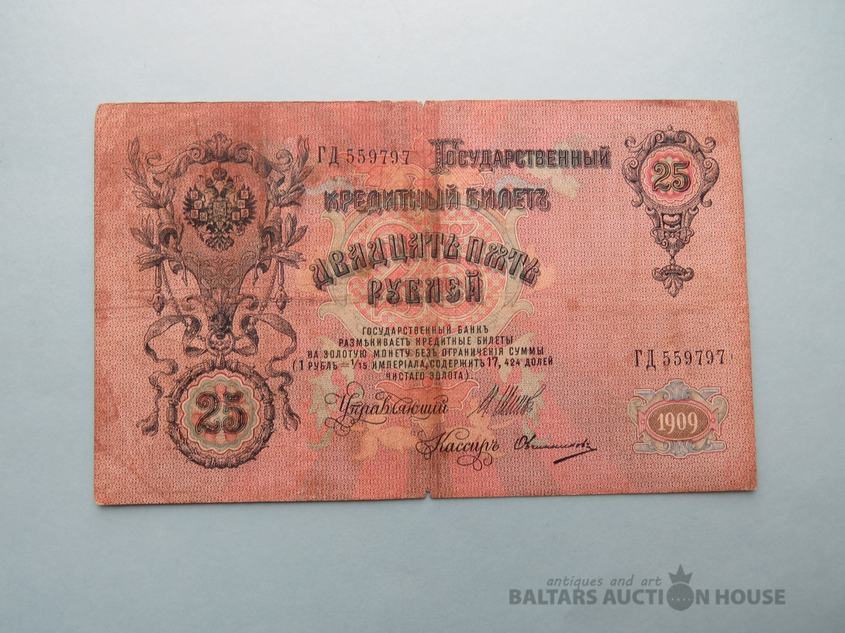BANKNOTE 1909 GADS Krievija 25 rublis