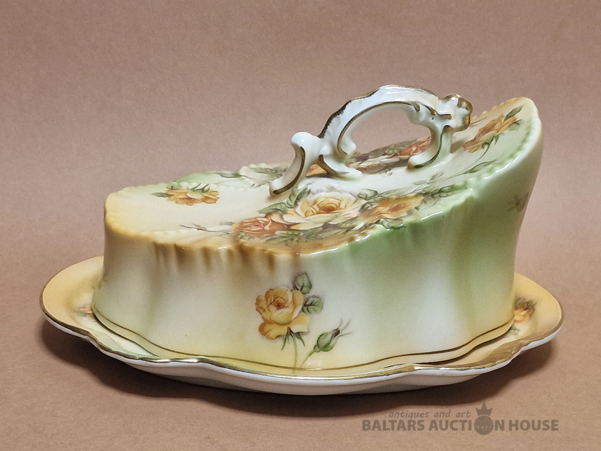 Porcelāna siera trauks. Dzelten-brūnu rožu dekols.Anglija 40 tie gadi., Viktorijas laikmeta stils. Porcelāns/gleznojums.H 11 cm D 24 cm.
