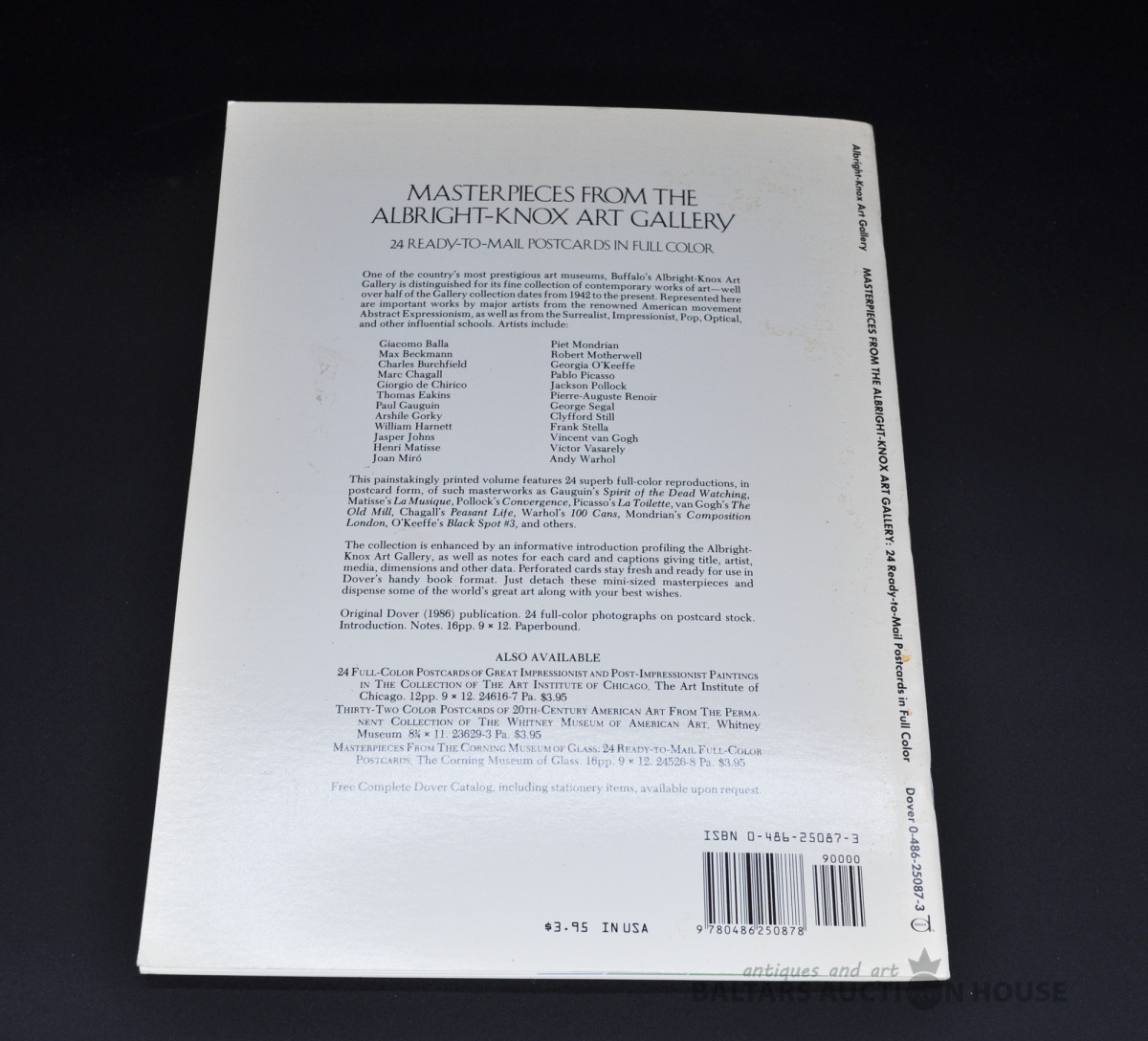 Noplēšamas atklātnes "Masterpieces from the Albright-Knox art gallery" ASV 1986. Nelietotas.