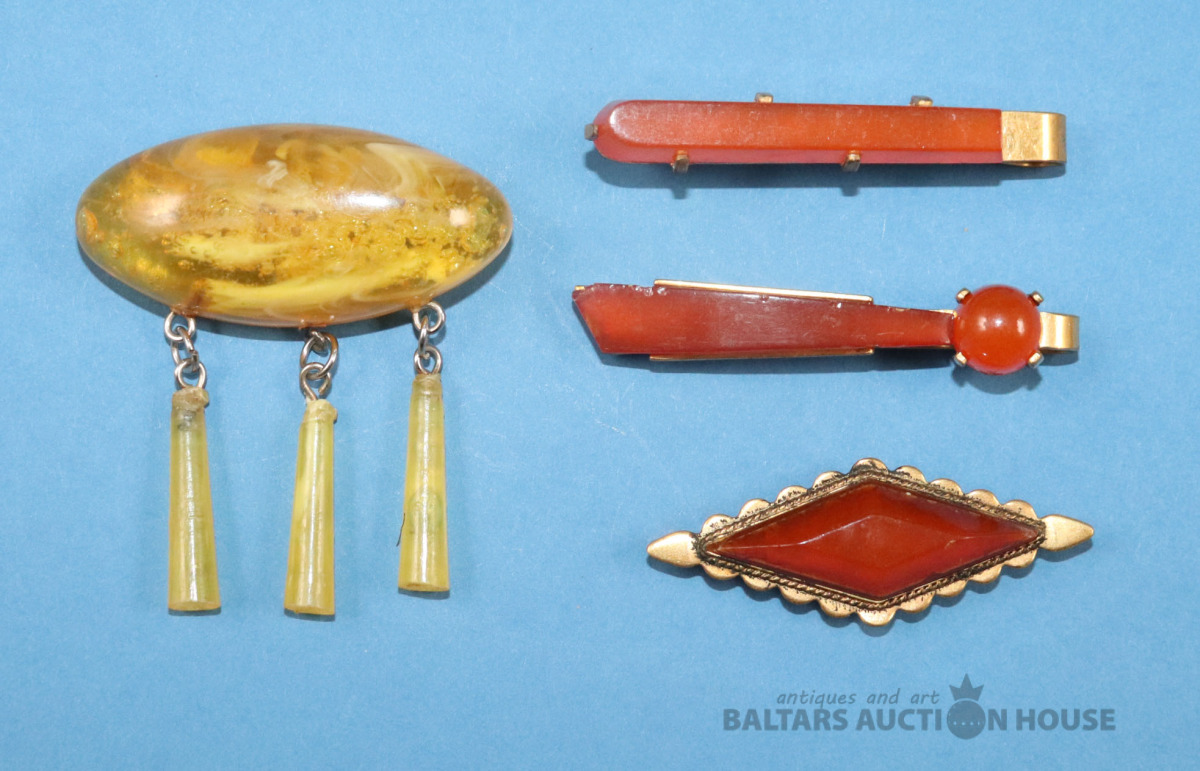 Dzintara brošas 2 gab un kuloni 2 gab. Kopējais svars 46,26 g