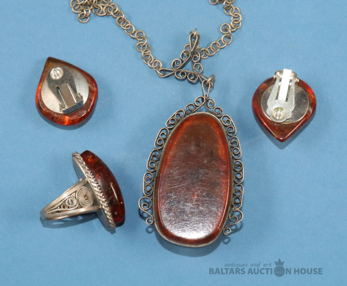 Dzintara kulons, gredzens un auskari. Kopējais svars 43,07 g