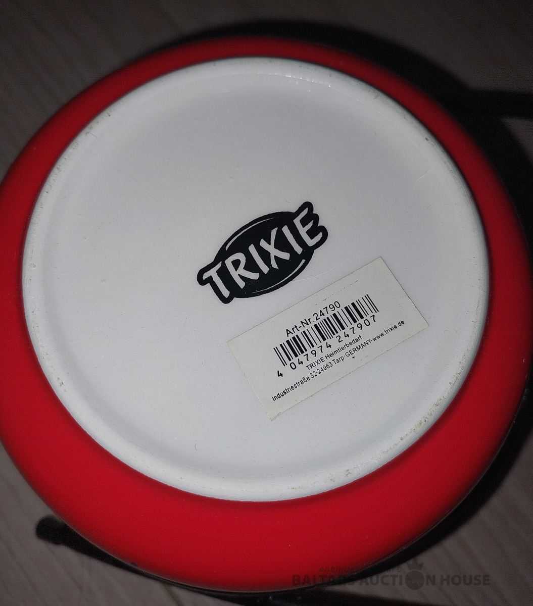 Divi porcelāna trauki kakiem ar metāla pamatni. Trauciņu H 5.5 cm D 13 cm. Augstums kopā ar pamatni 8 cm. Trixie, Vācija.