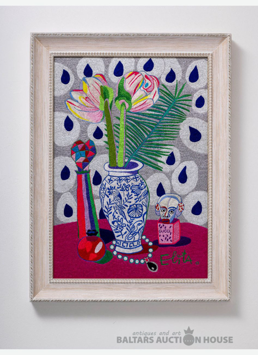 Elita PATMALNIECE Klusa daba ar amarilli.Autortehnika, audeks, diegi izšuvums 56/75. 2023