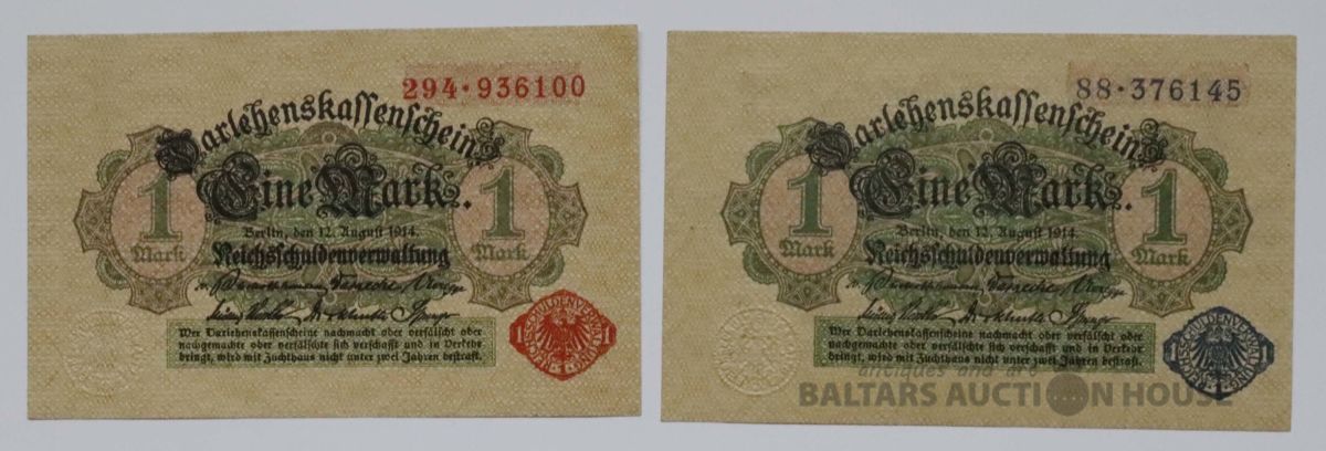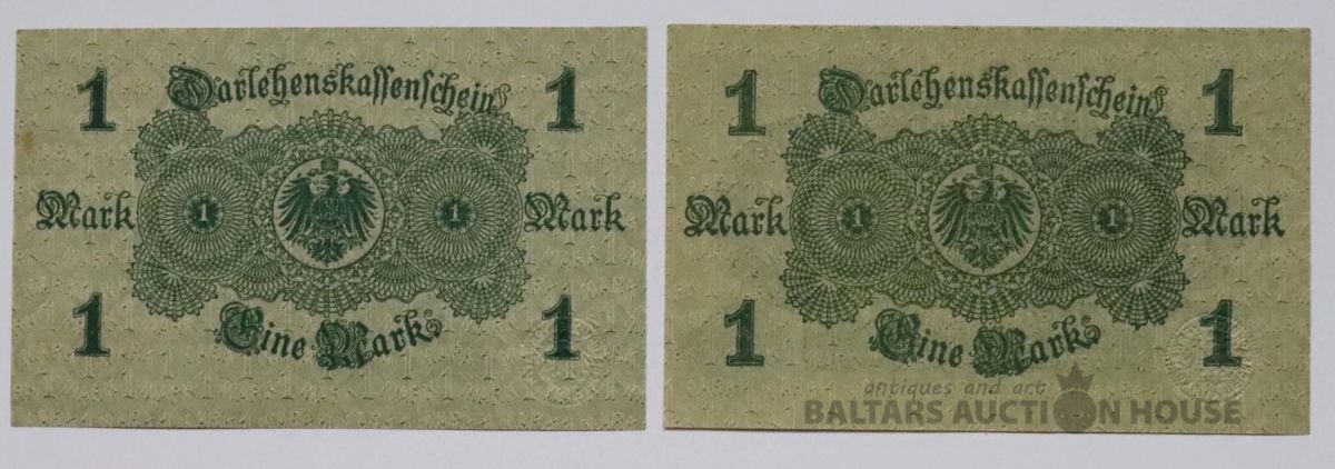 Divas banknotes. 1 reichsmark. 88.376145 un 294.936100. Stāvoklis - XF.