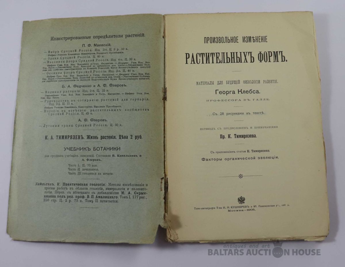 Г.Клебс Произвольное изменение растительных форм. 1905 г.