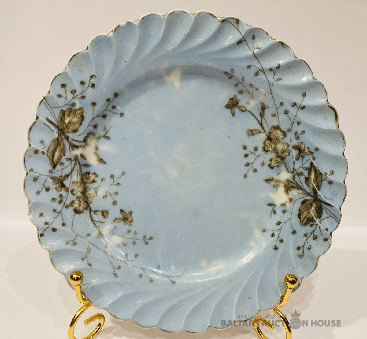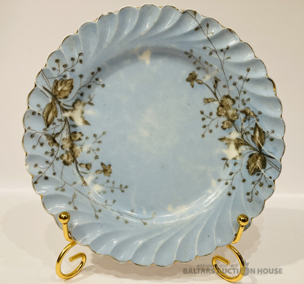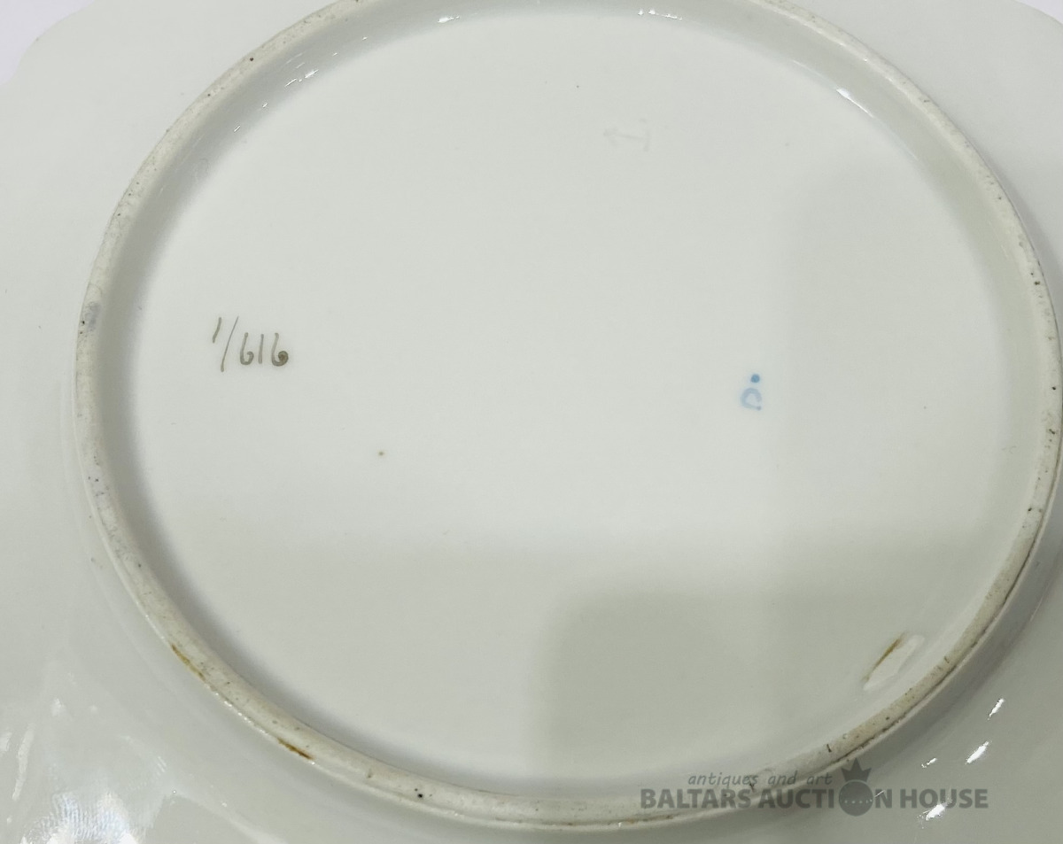 Kuzņecova šķīvis, Krievijas Impērija, laika periods ap 1920 gadu, D - 16,5 cm, cipara dekora marķējums, viļņotas maliņas, bez plaisām, vietām ir krāsas noberzumi, uz maliņas ir mikro asums uz tausti nosakāms (nav pamanāms).