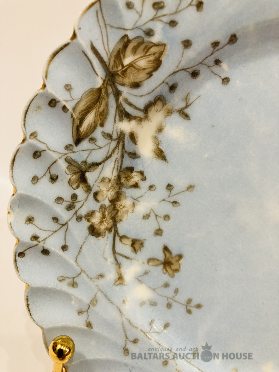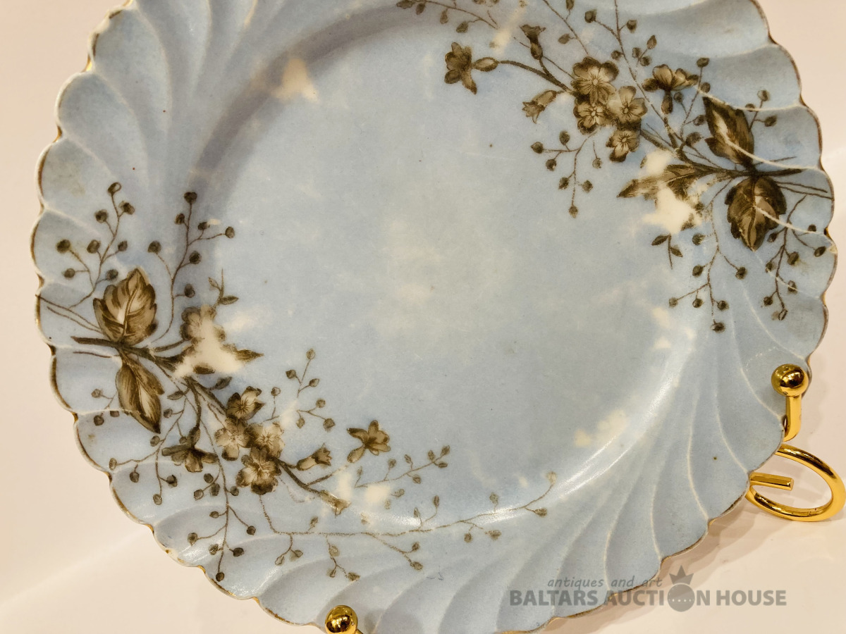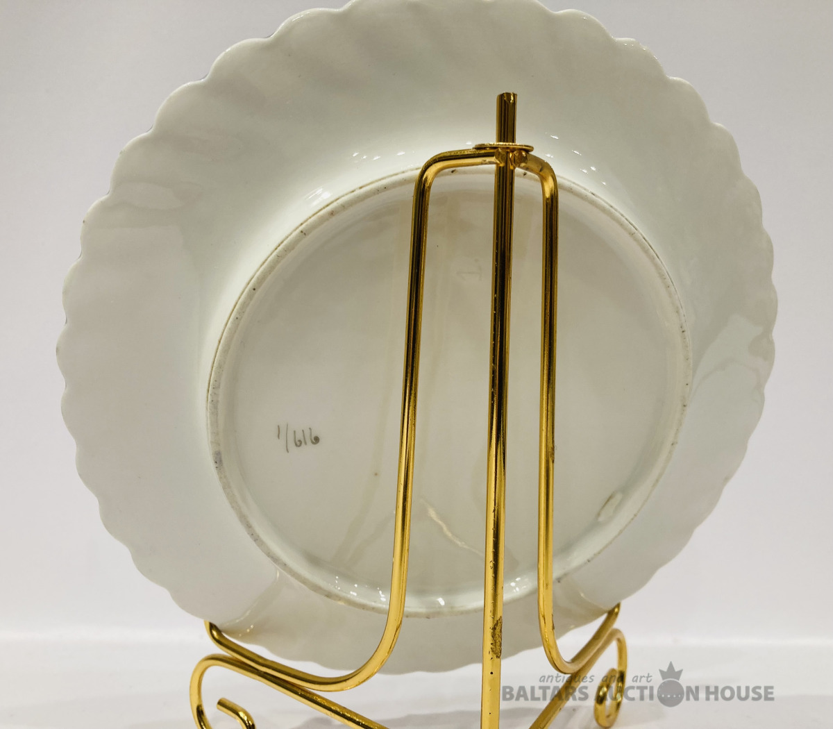 Kuzņecova šķīvis, Krievijas Impērija, laika periods ap 1920 gadu, D - 16,5 cm, cipara dekora marķējums, viļņotas maliņas, bez plaisām, vietām ir krāsas noberzumi, uz maliņas ir mikro asums uz tausti nosakāms (nav pamanāms).
