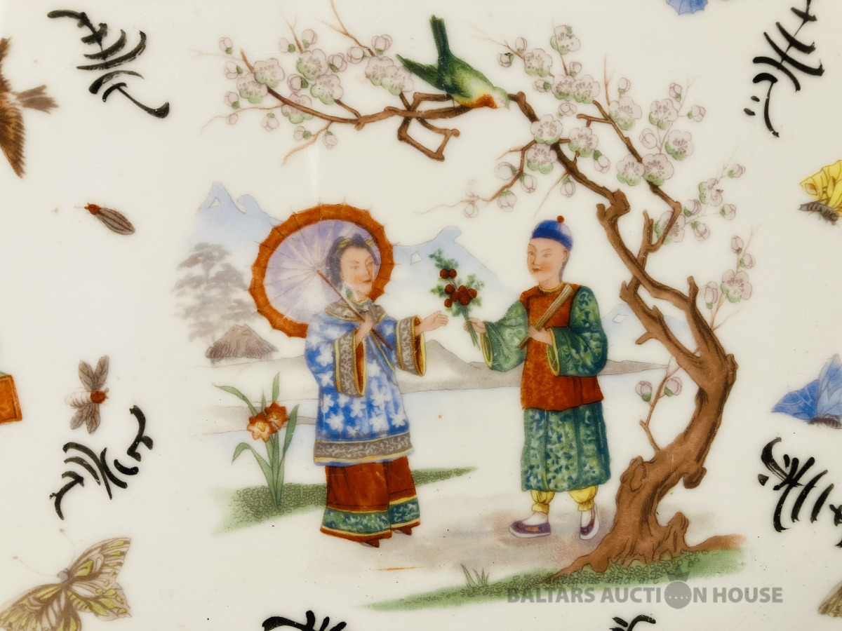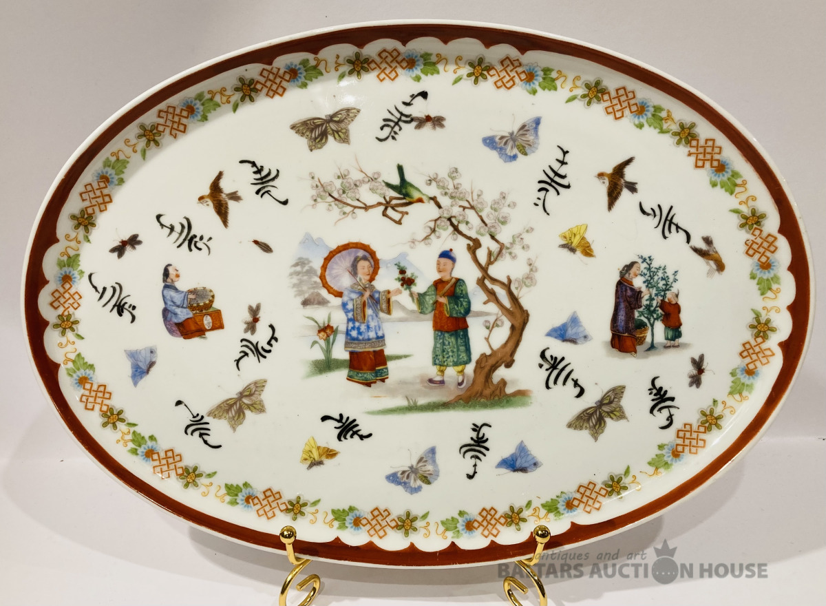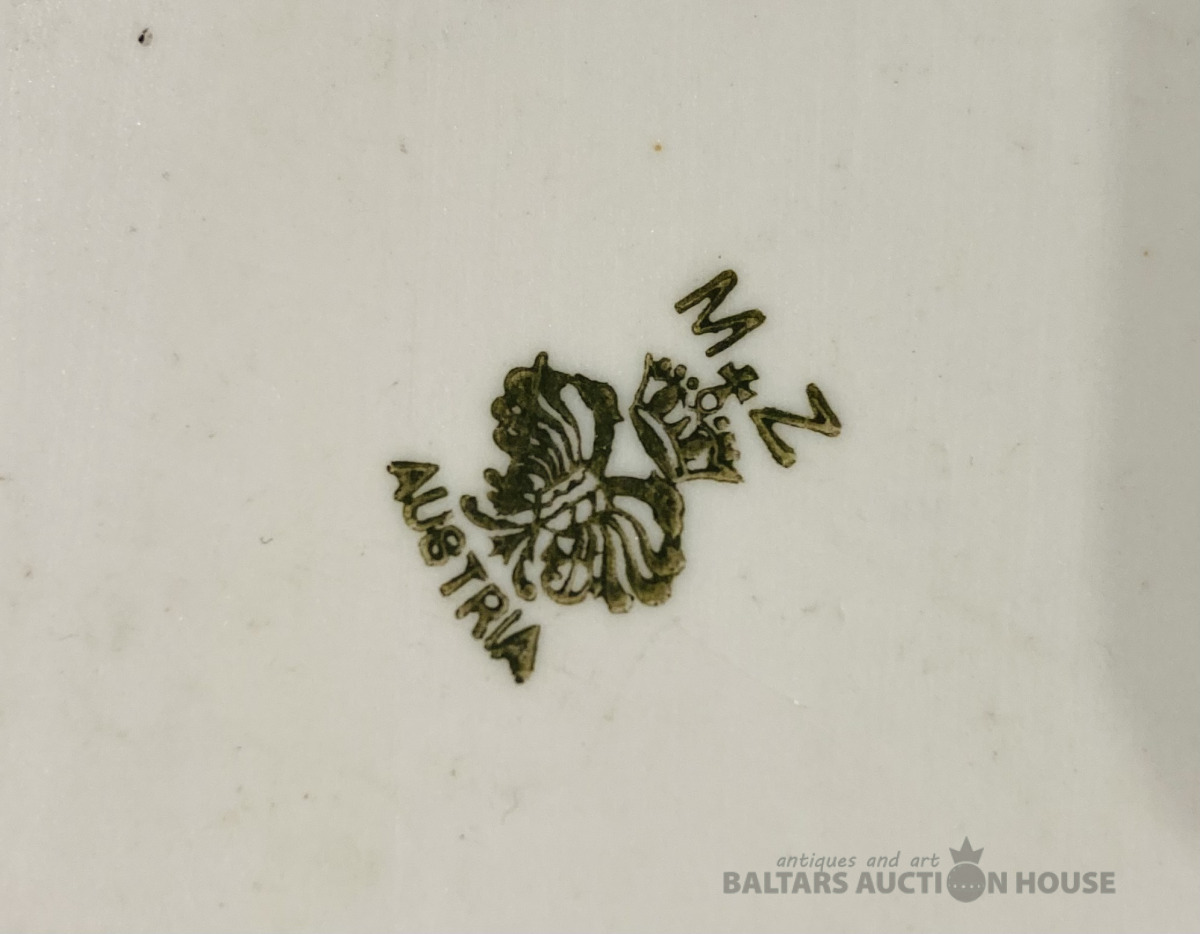 Pirmskara šķīvis - paplāte Austrumu motīvs, MZ Austrija 1884-1909 gada marķējums, rokas apgleznojums, 32 x 22 cm, labā stāvoklī atbilstoši vecumam bez defektiem.