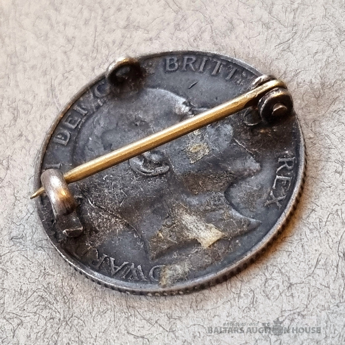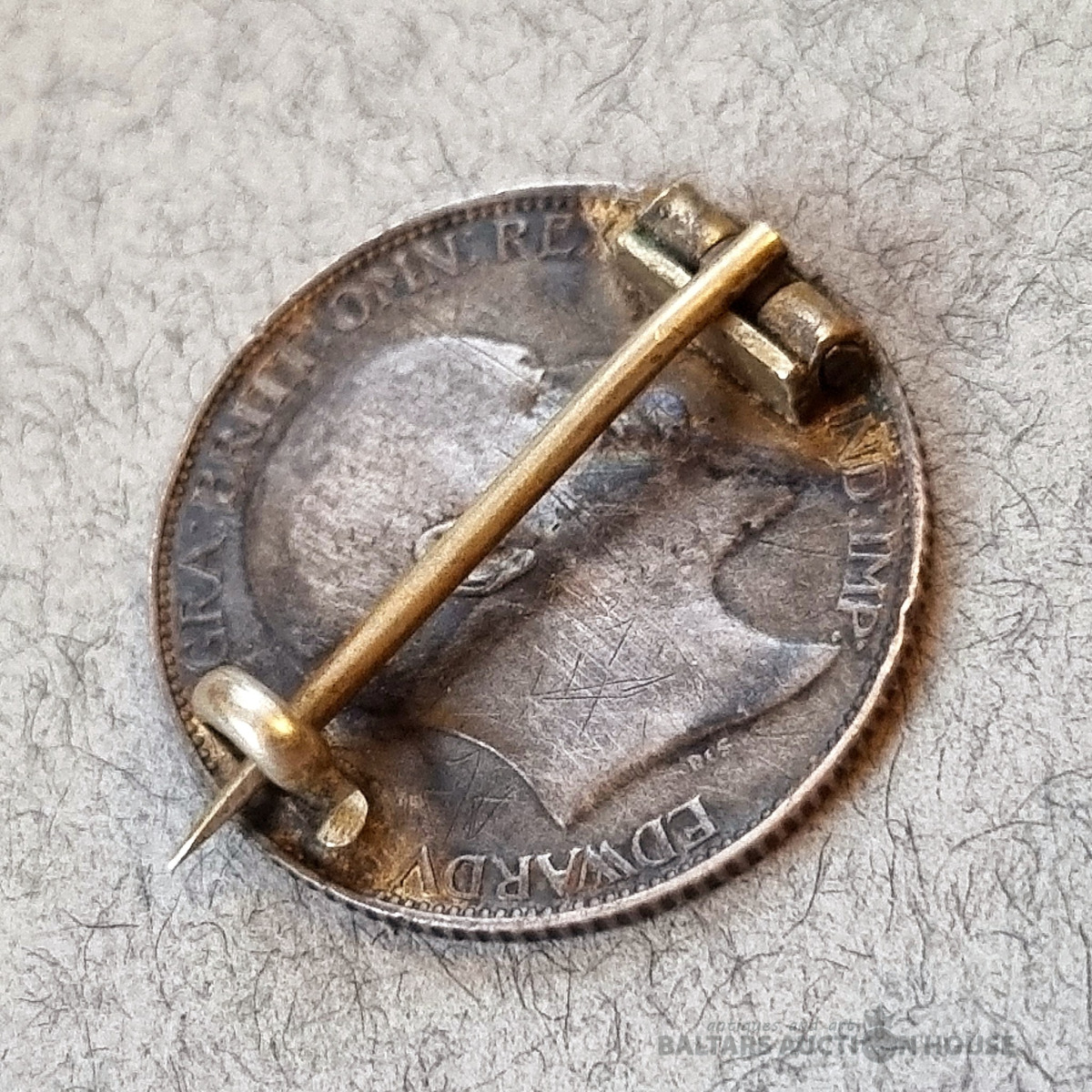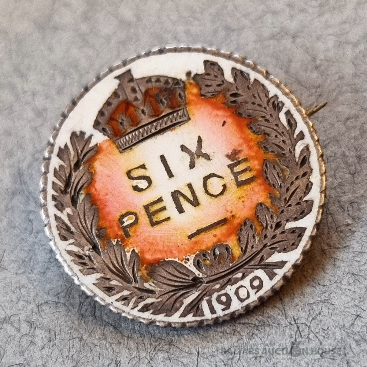 BROKŠA - Sixpence, Apvienotās Karalistes karalis Edvards VII, 1909. Sudrabs. Diametrs 19 mm. Emalja.