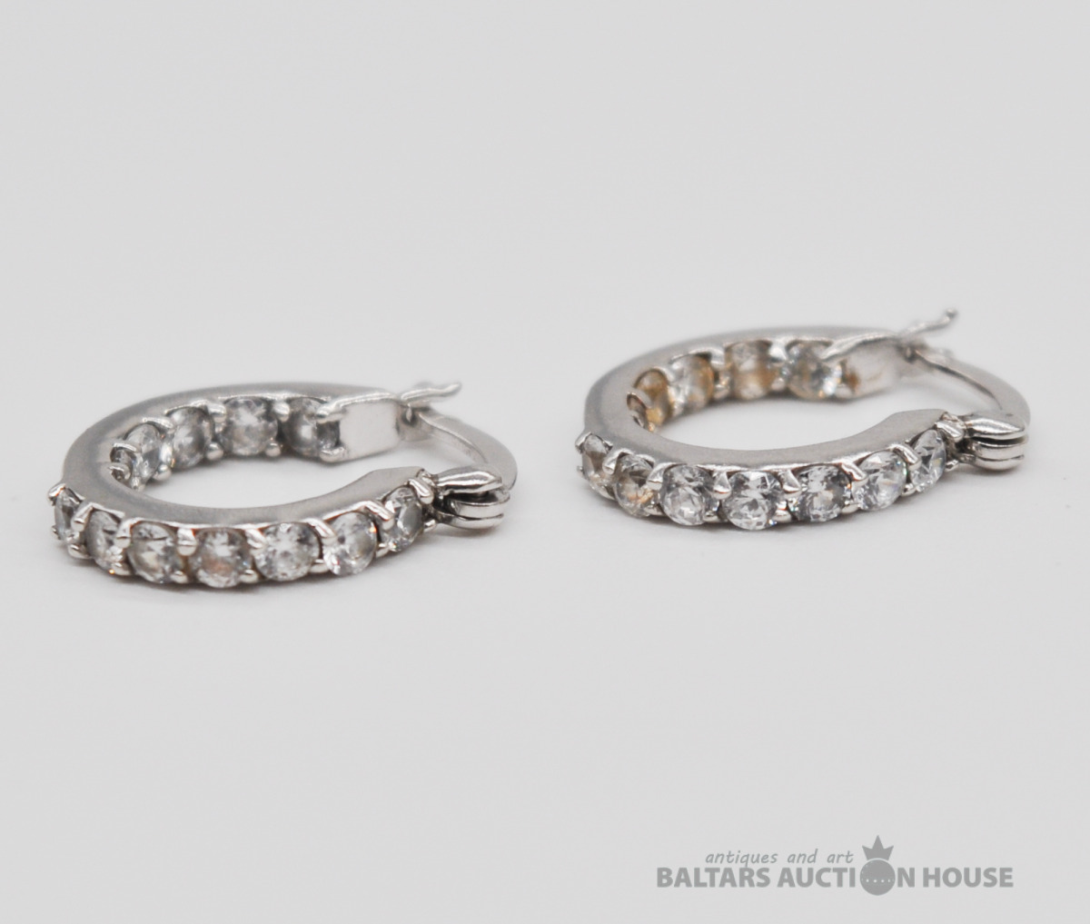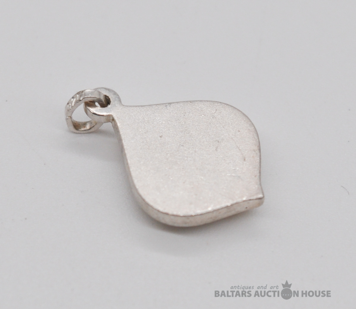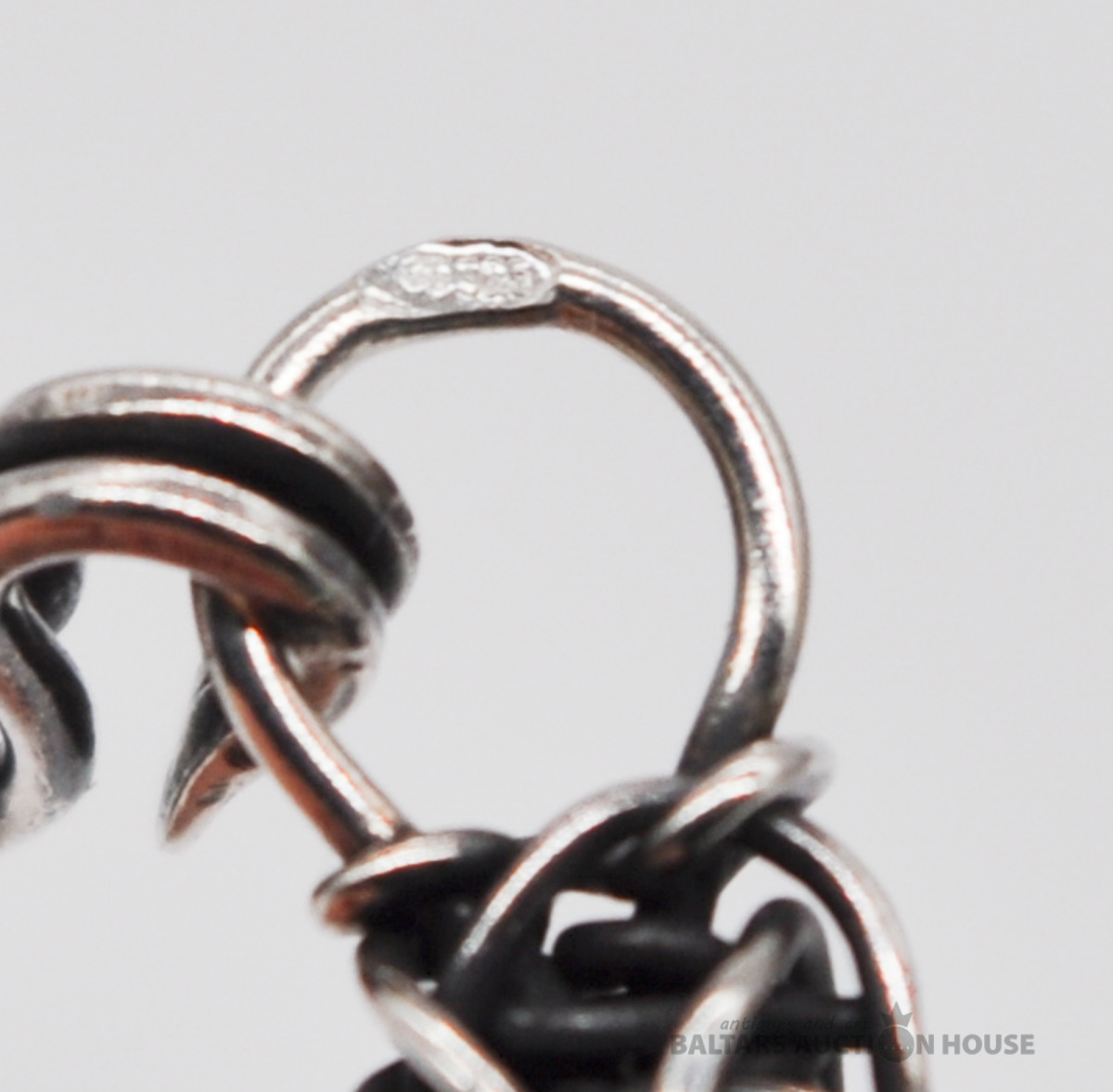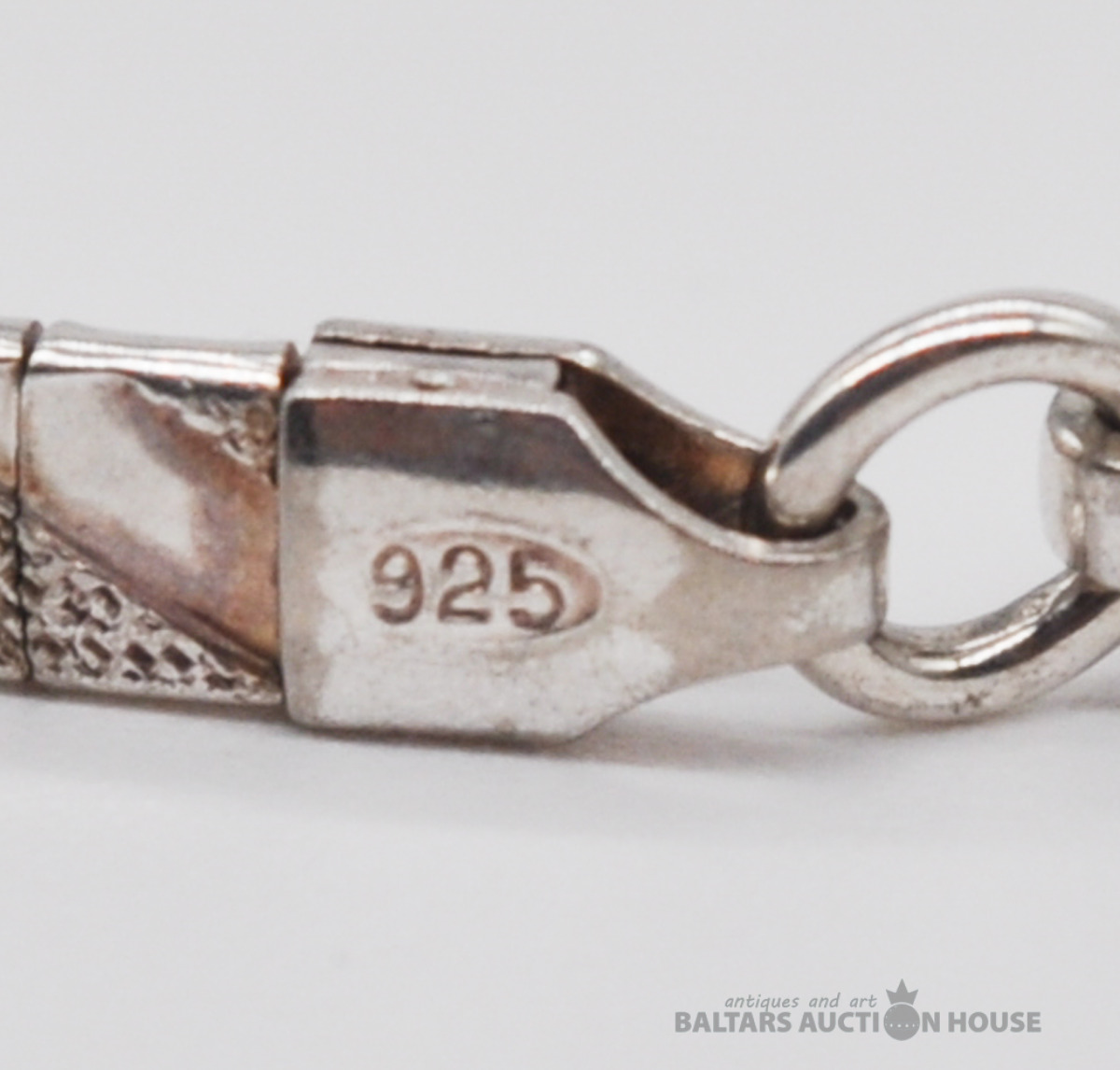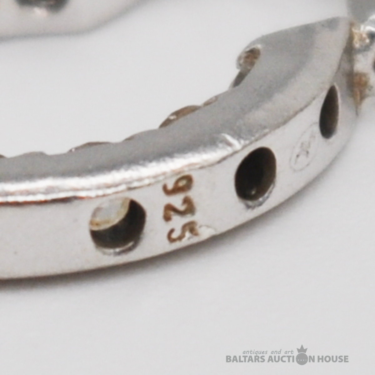 Art Deco stila piespraude ar baltiem akmeņiem. Sudrabs, 925. prove. Svars 5,55 grami. Augstums 7 cm.