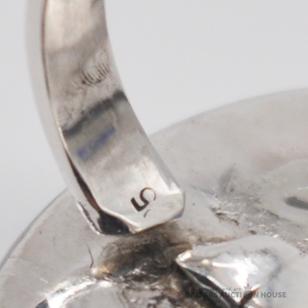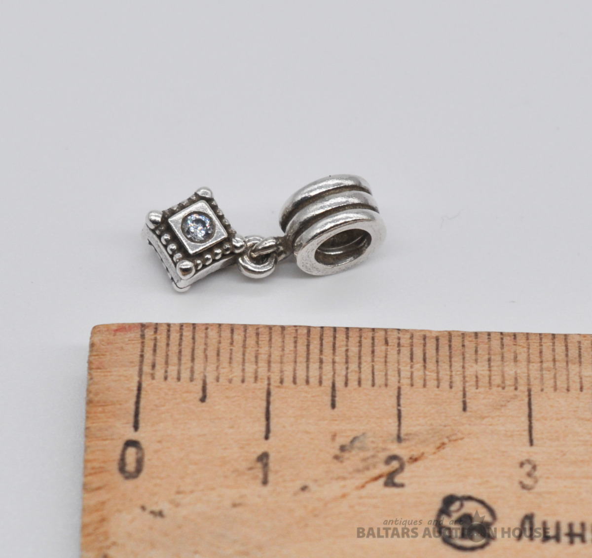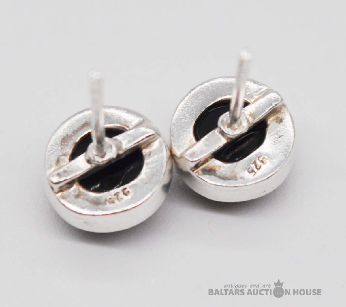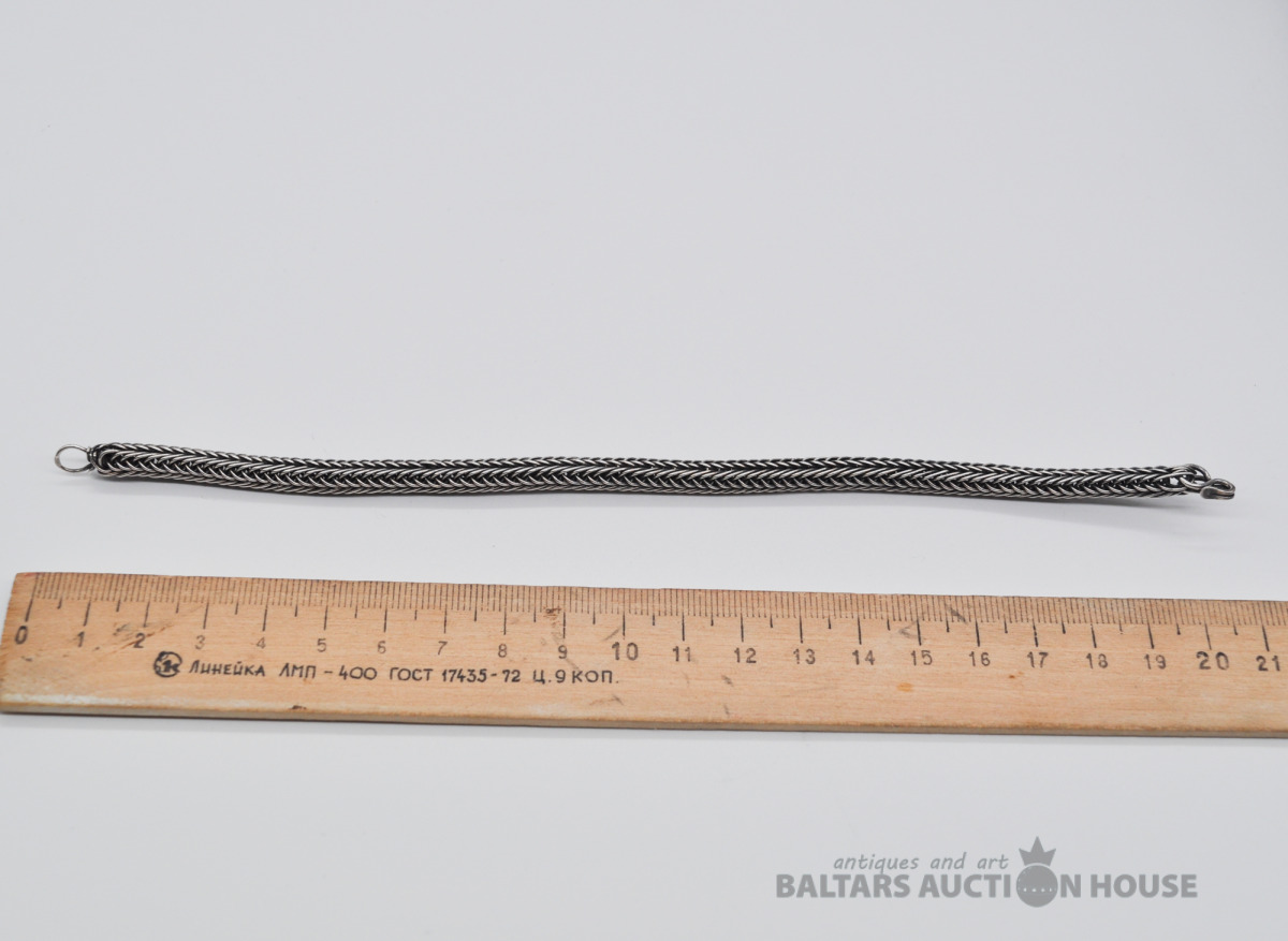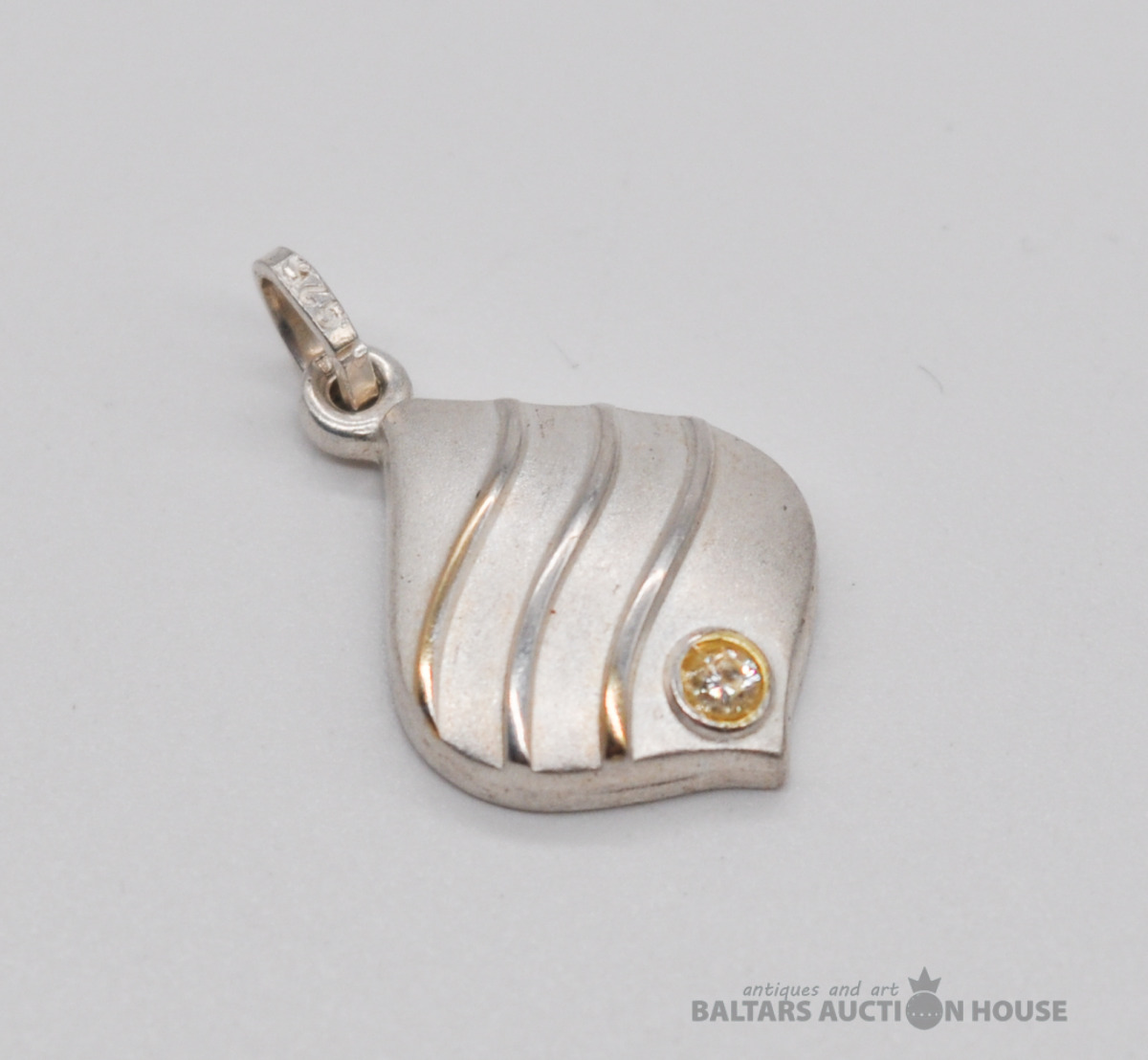 Art Deco stila piespraude ar baltiem akmeņiem. Sudrabs, 925. prove. Svars 5,55 grami. Augstums 7 cm.