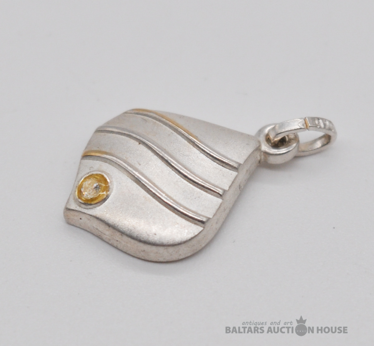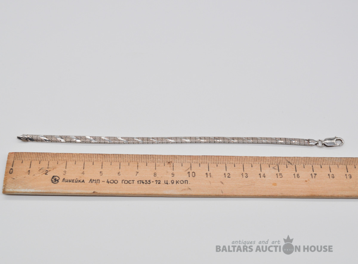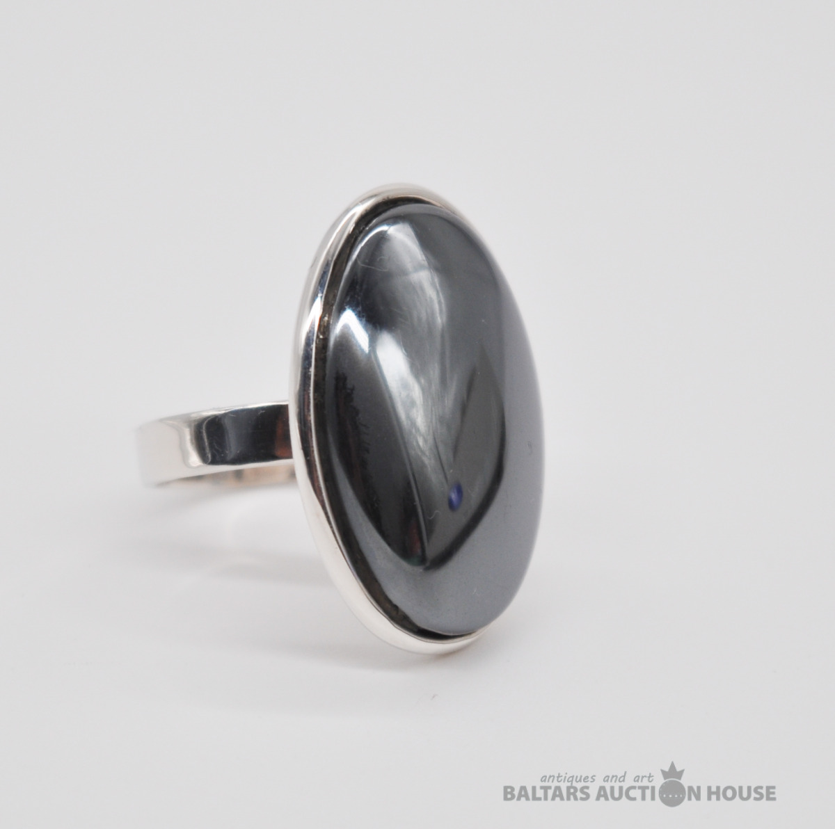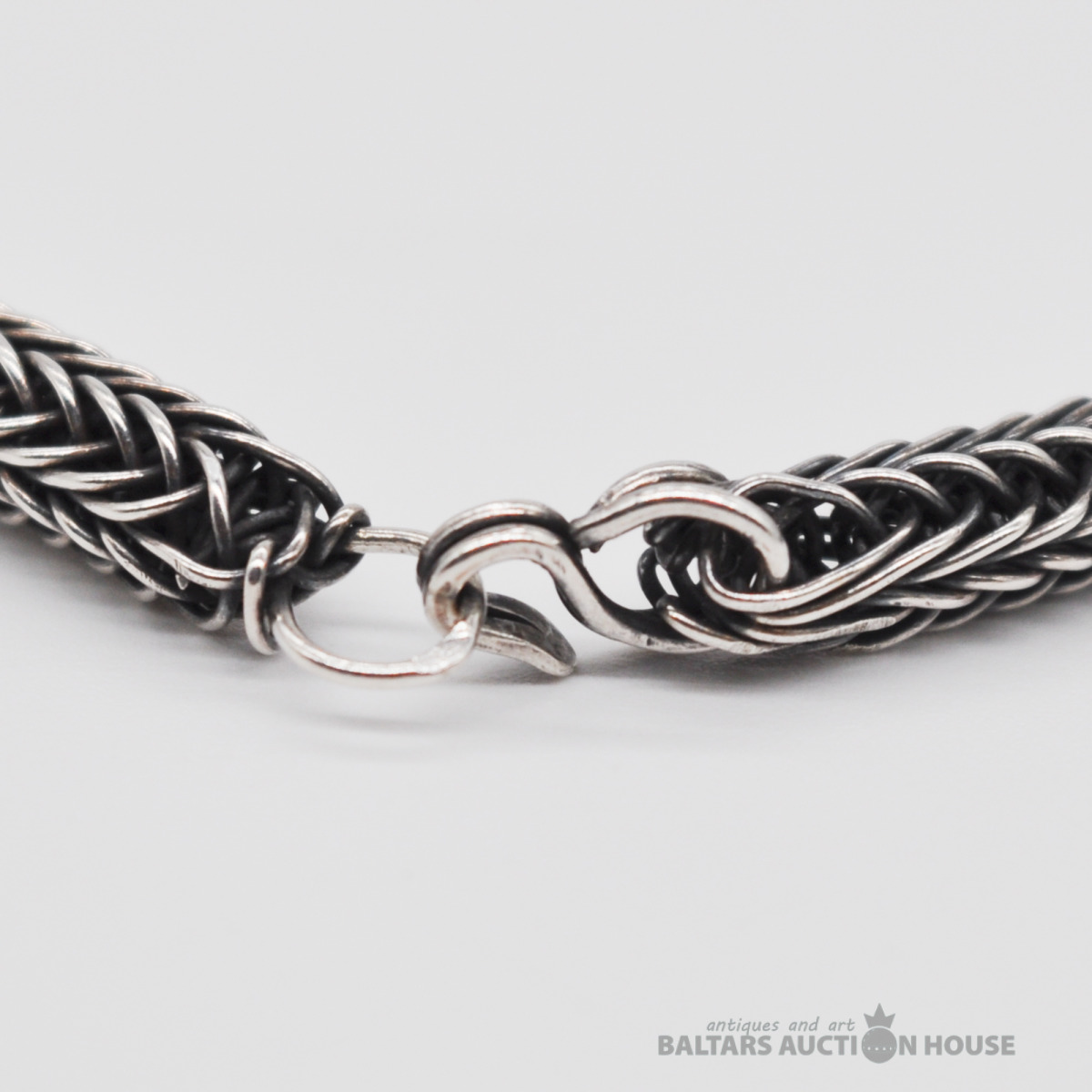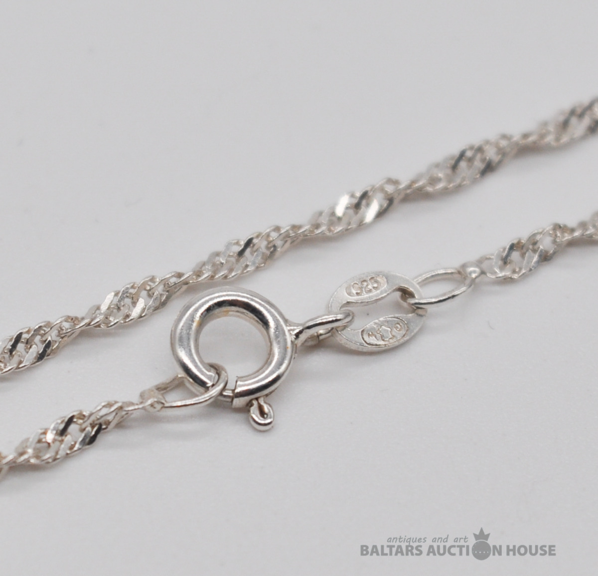 Art Deco stila piespraude ar baltiem akmeņiem. Sudrabs, 925. prove. Svars 5,55 grami. Augstums 7 cm.