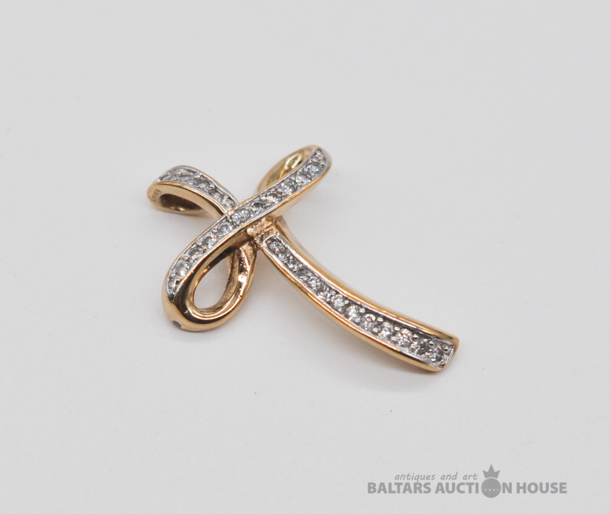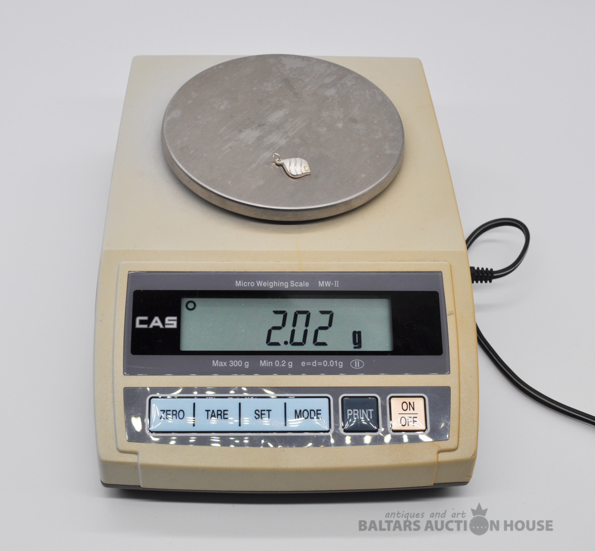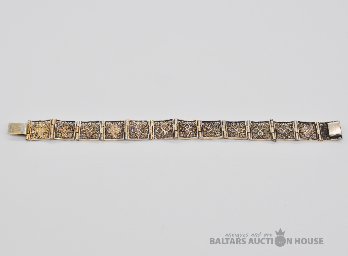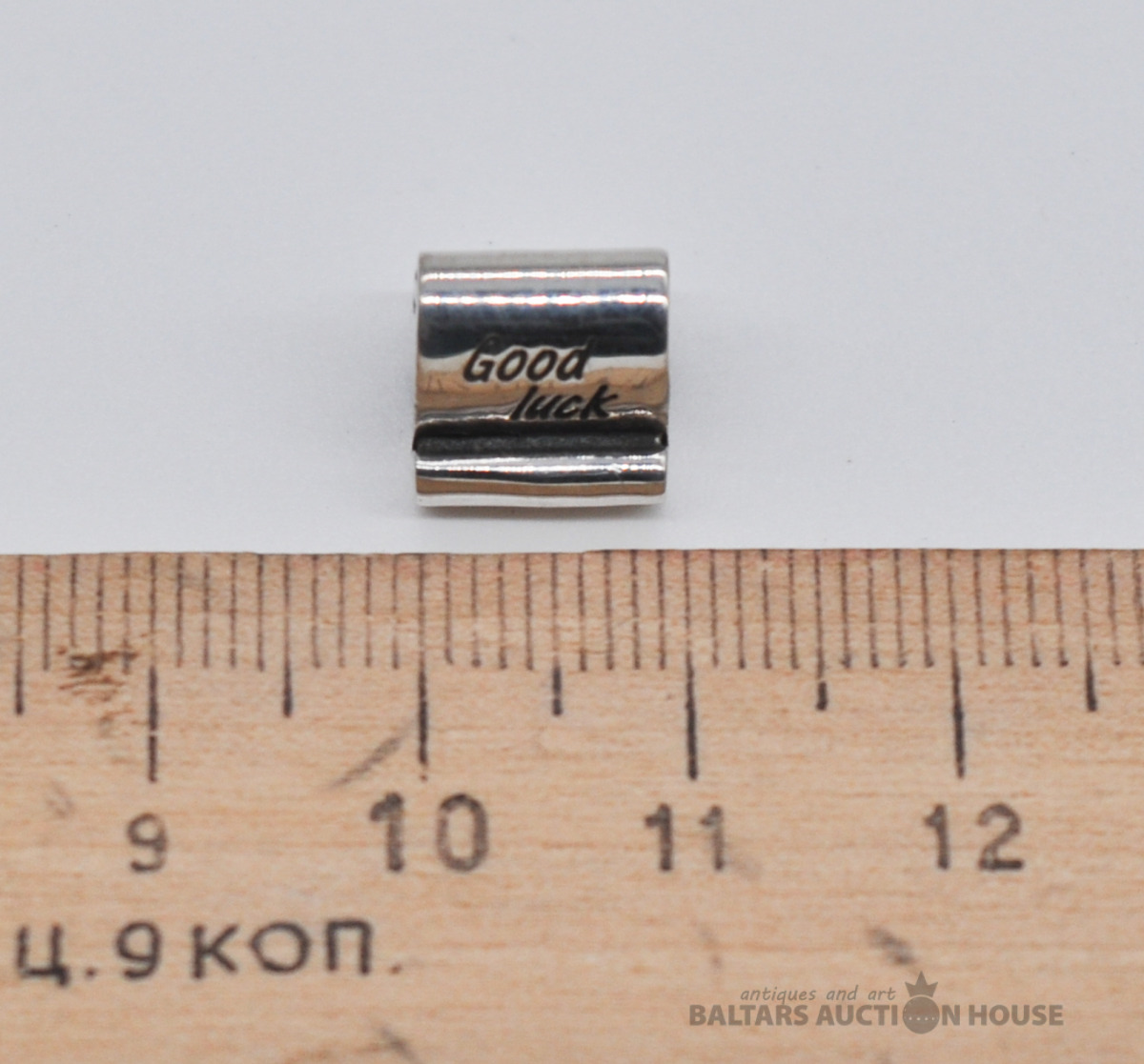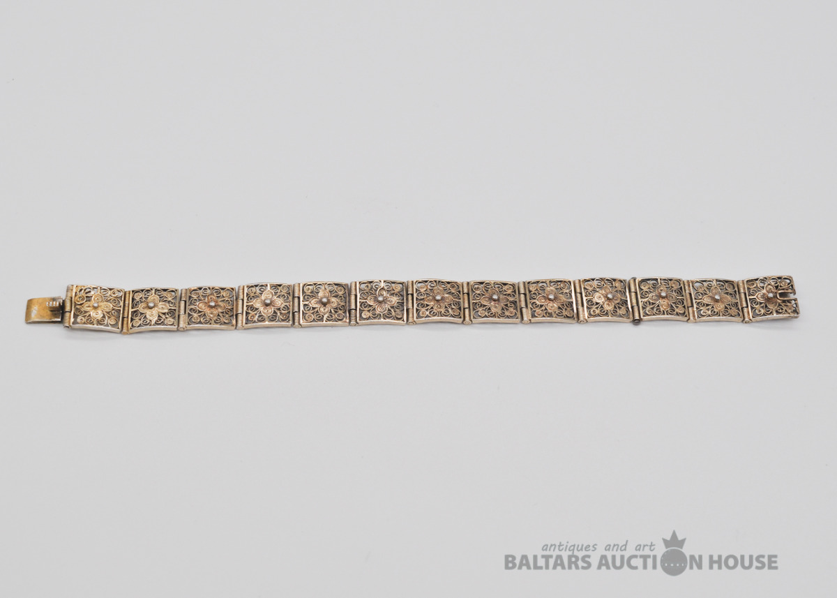 Art Deco stila piespraude ar baltiem akmeņiem. Sudrabs, 925. prove. Svars 5,55 grami. Augstums 7 cm.