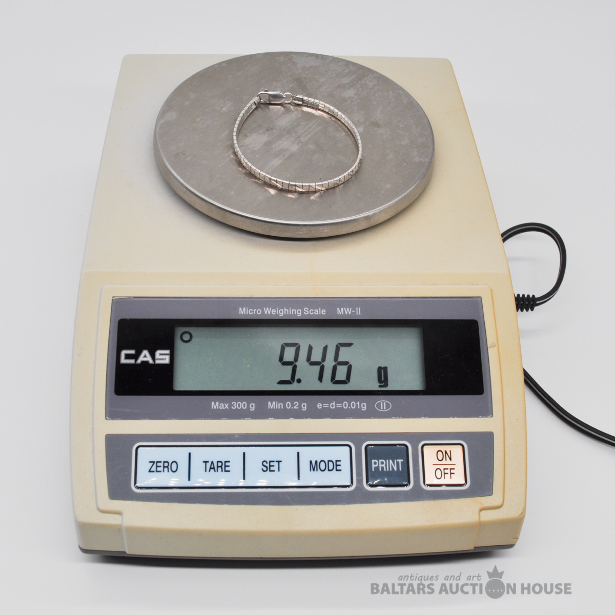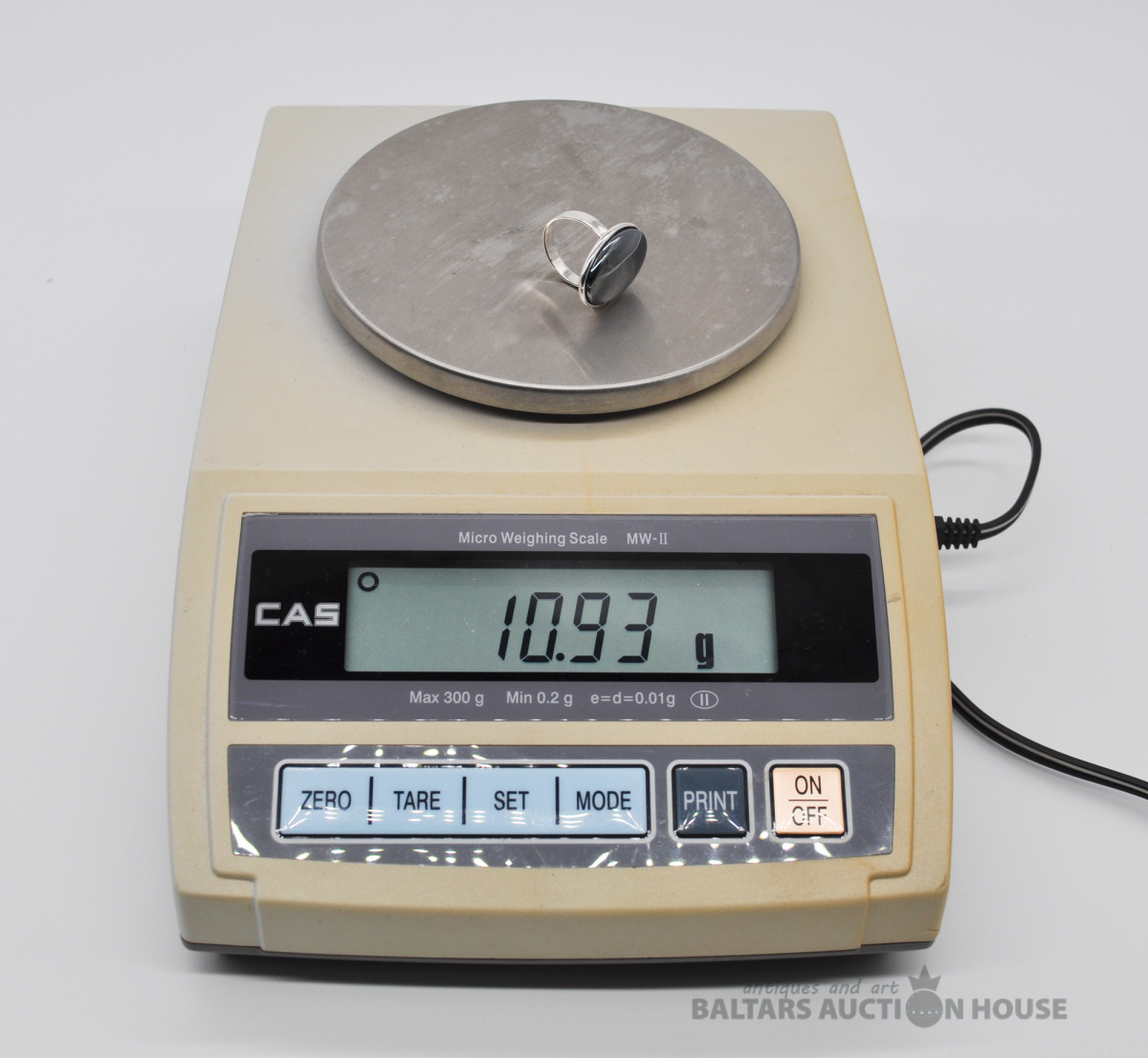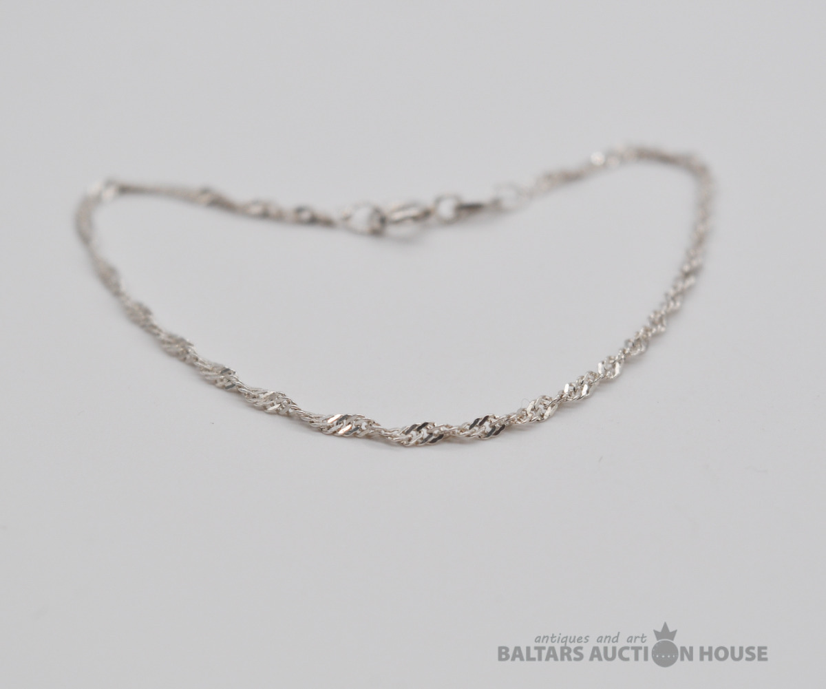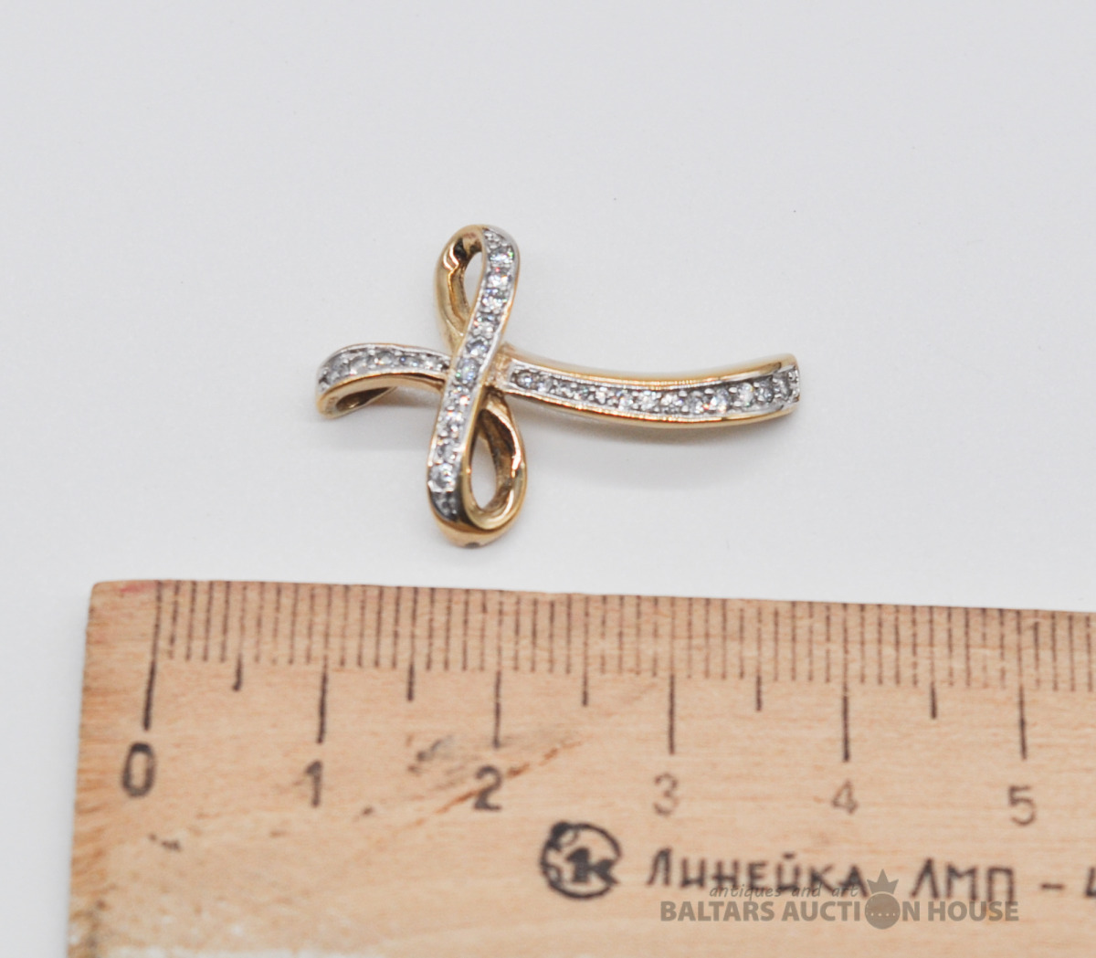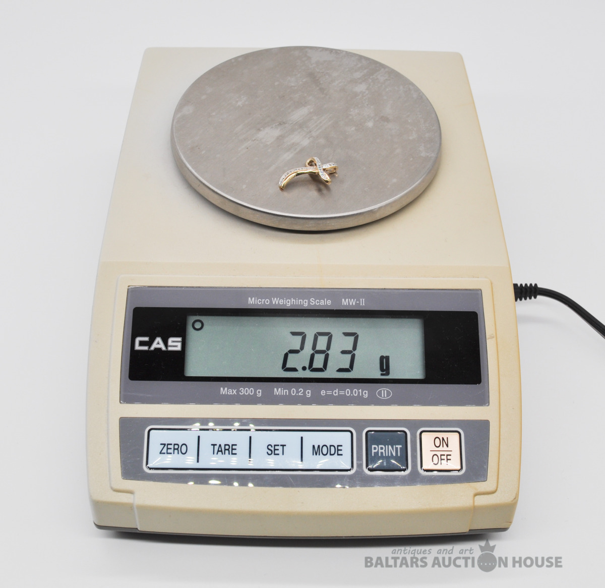 Art Deco stila piespraude ar baltiem akmeņiem. Sudrabs, 925. prove. Svars 5,55 grami. Augstums 7 cm.