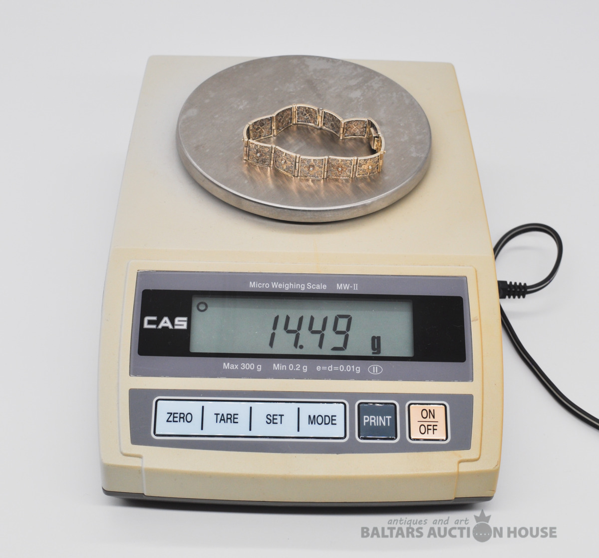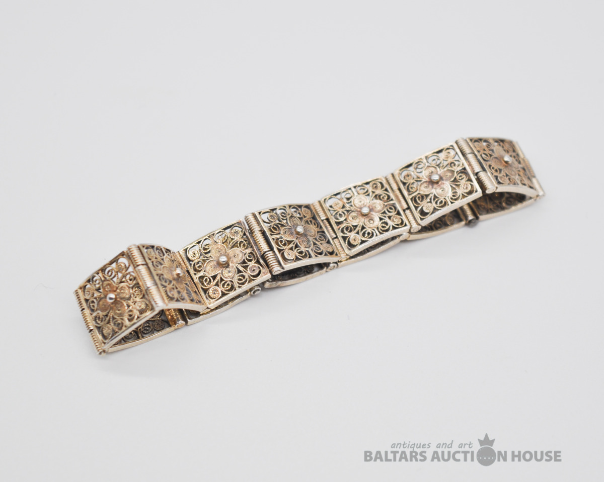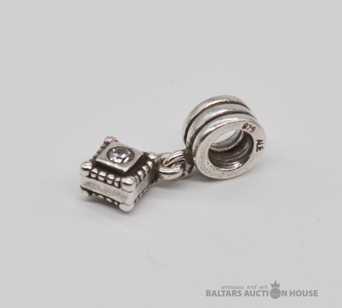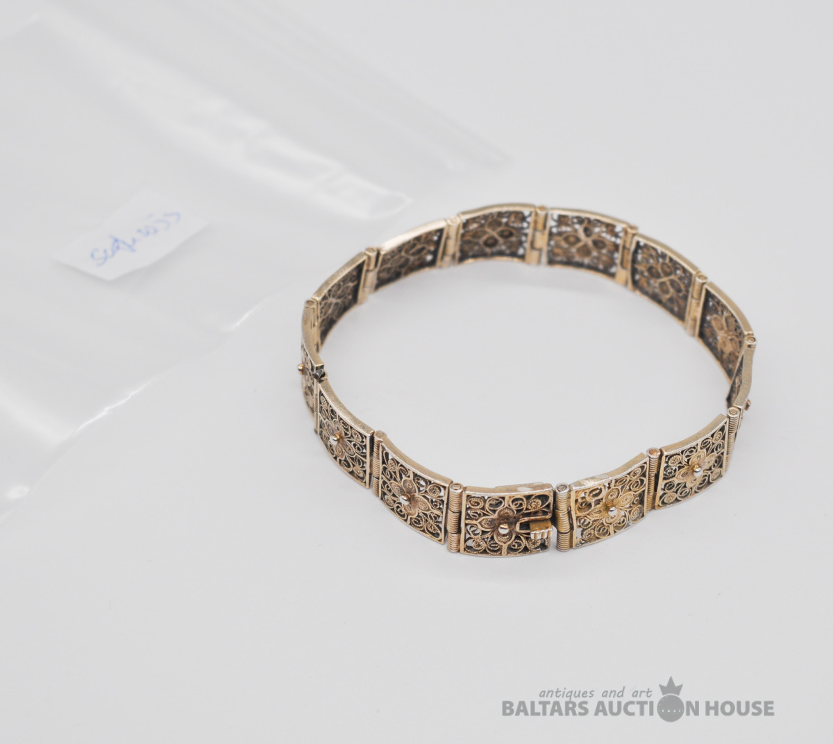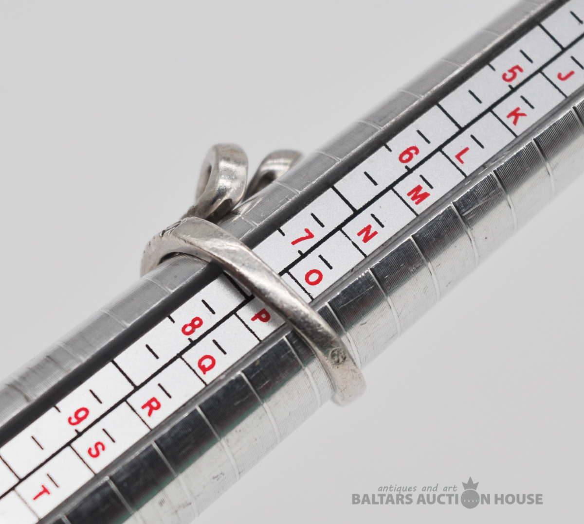 Art Deco stila piespraude ar baltiem akmeņiem. Sudrabs, 925. prove. Svars 5,55 grami. Augstums 7 cm.