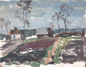 STEPANS SKAKUNS (1921-1985) Ainava ar mājām. K.e. 34,5x45 cm