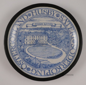 Sienas šķīvis ÖSTERGÖTLAND HUSBY SÄTERI SÖDERKÖPING. Autors Ēriks Priedkalns, āda, porcelāns, roku gleznojums. h=4,7 cm, d=26 cm