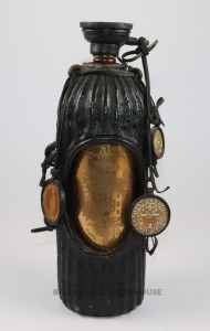 Balzama pudele. Autors Ēriks Priedkalns, āda, roku darbs. h=32 cm. d=9,5 cm