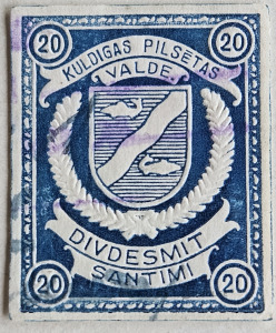 Kuldigas pilsetas valdes nodokļu marka. 20.santimi
